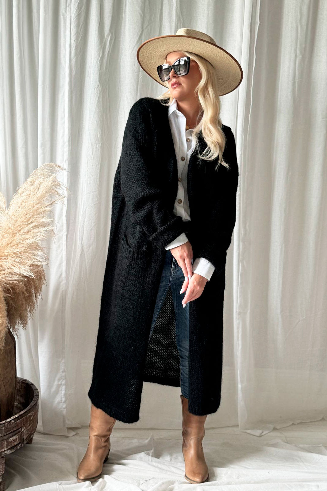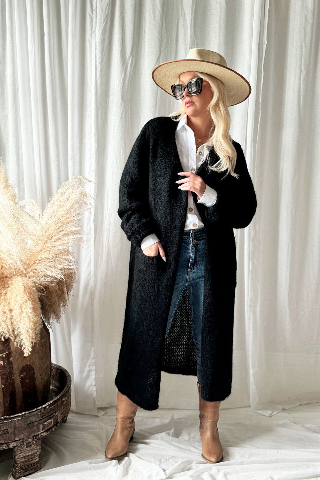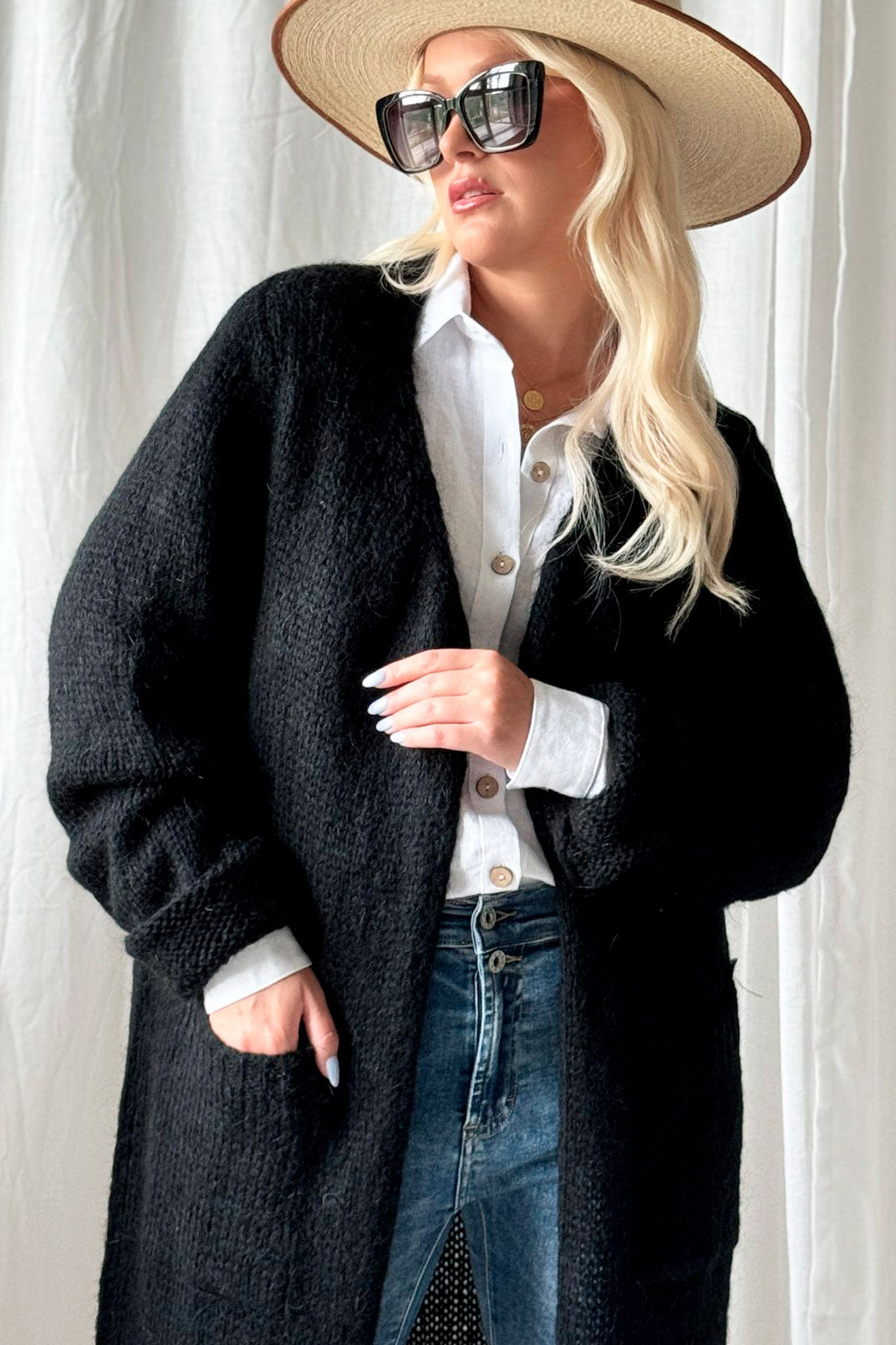 Long and soft bestseller, feminine and airy cardigan made of mohair blend. Turned-in, oversize Relaxed cuffs.