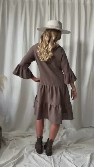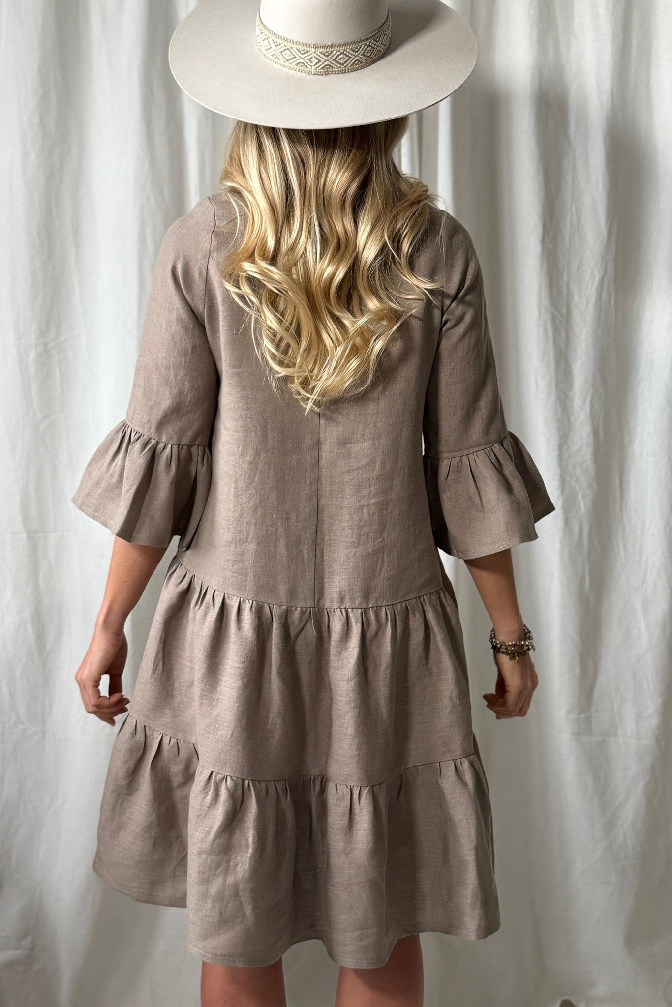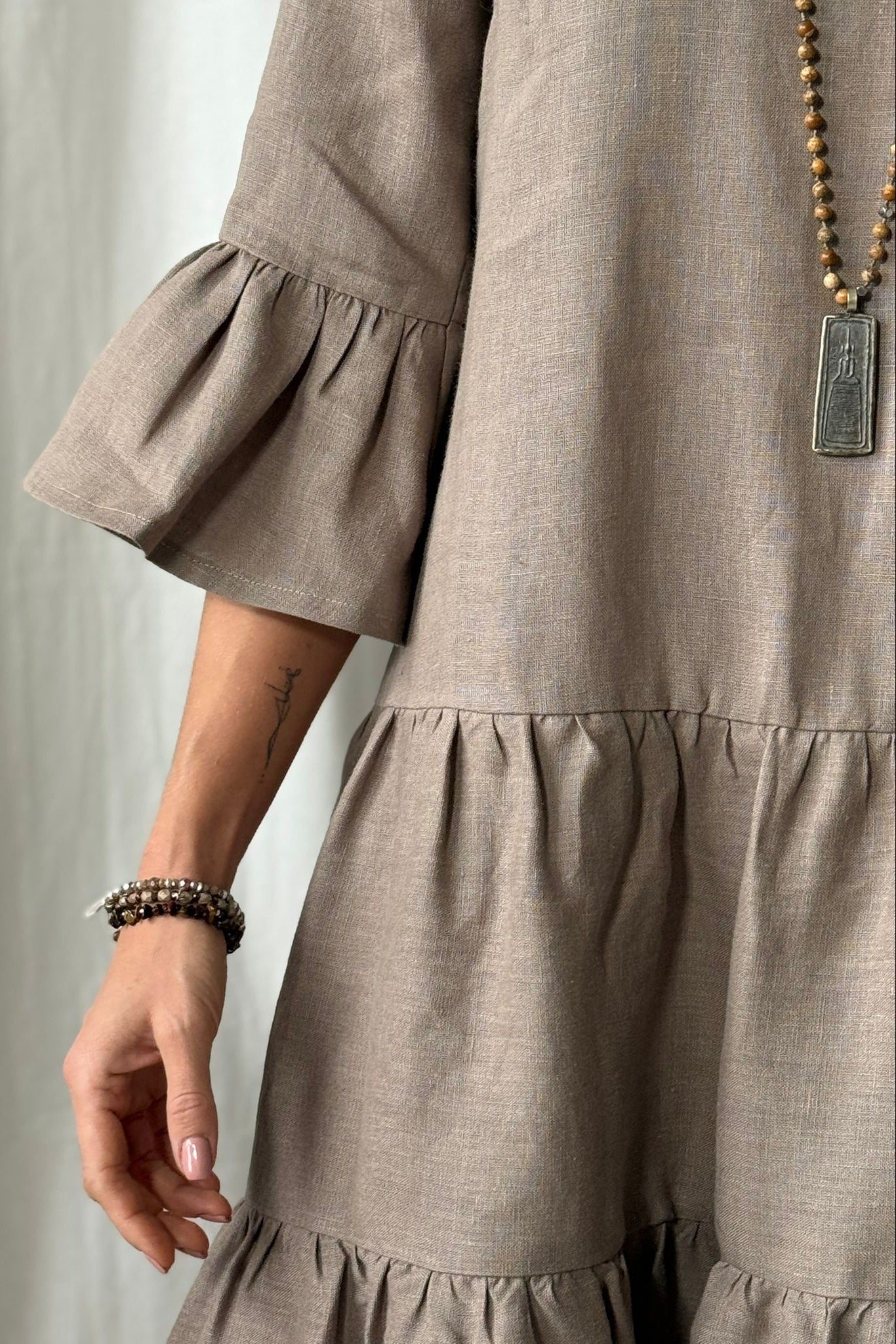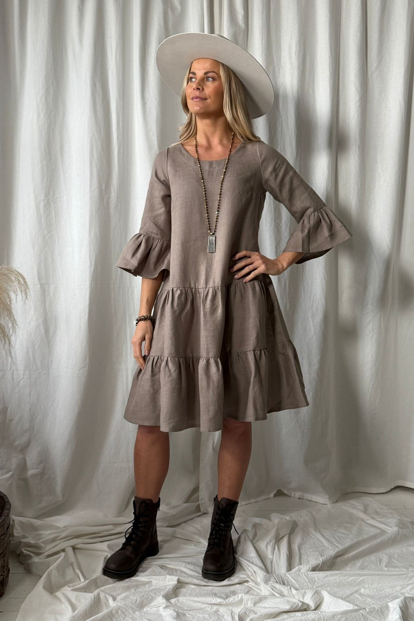 Beautiful and versatile dress dream BYPIAS in linen. Frills on the sleeves and hem.