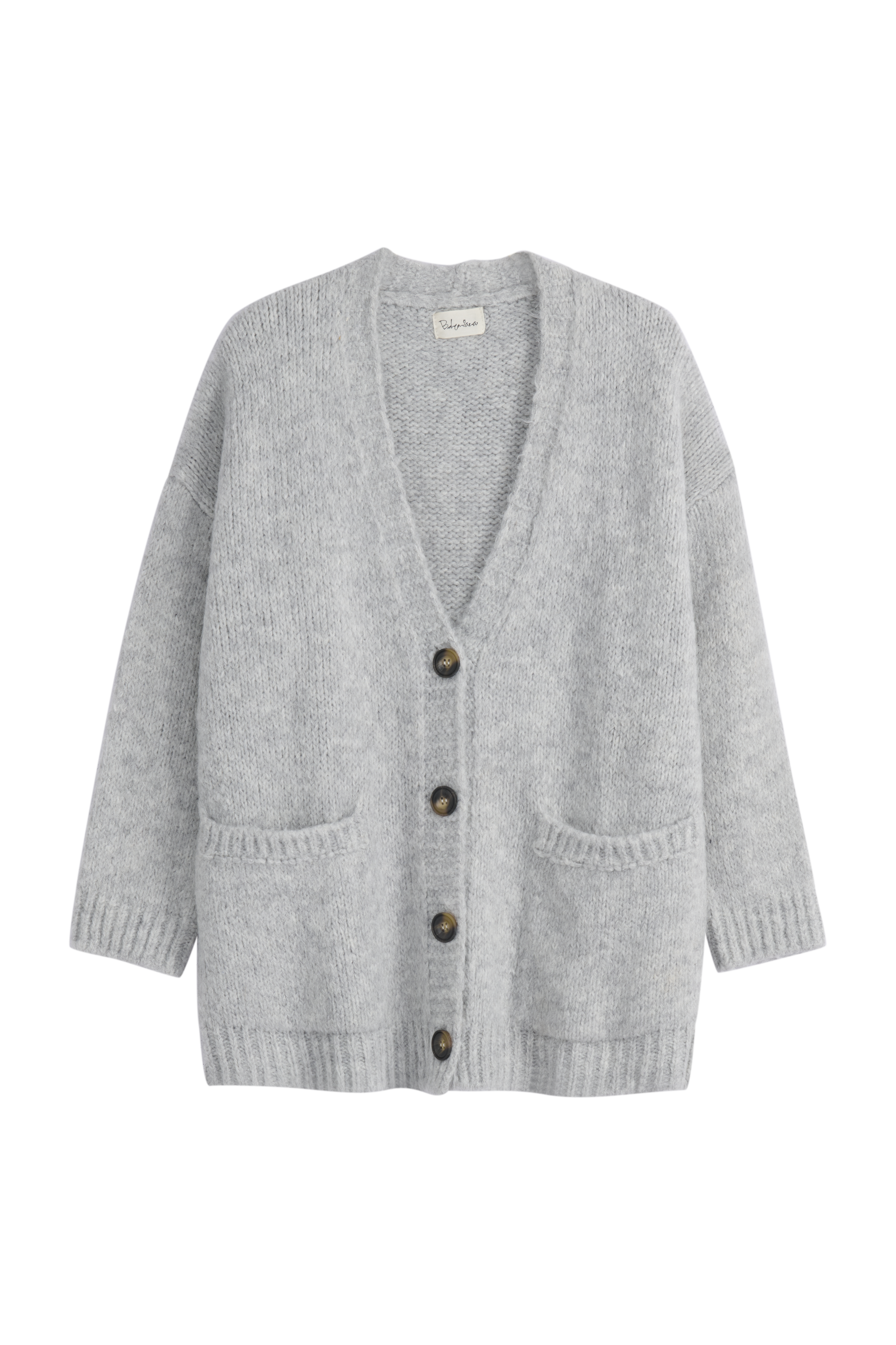 Pehmeä ja ihanan muhkea neuletakki jokapäiväiseen käyttöön. Edessä on kauniit suuret napit ja kätevät taskut. Hihoissa ja helmassa kevyt resori.