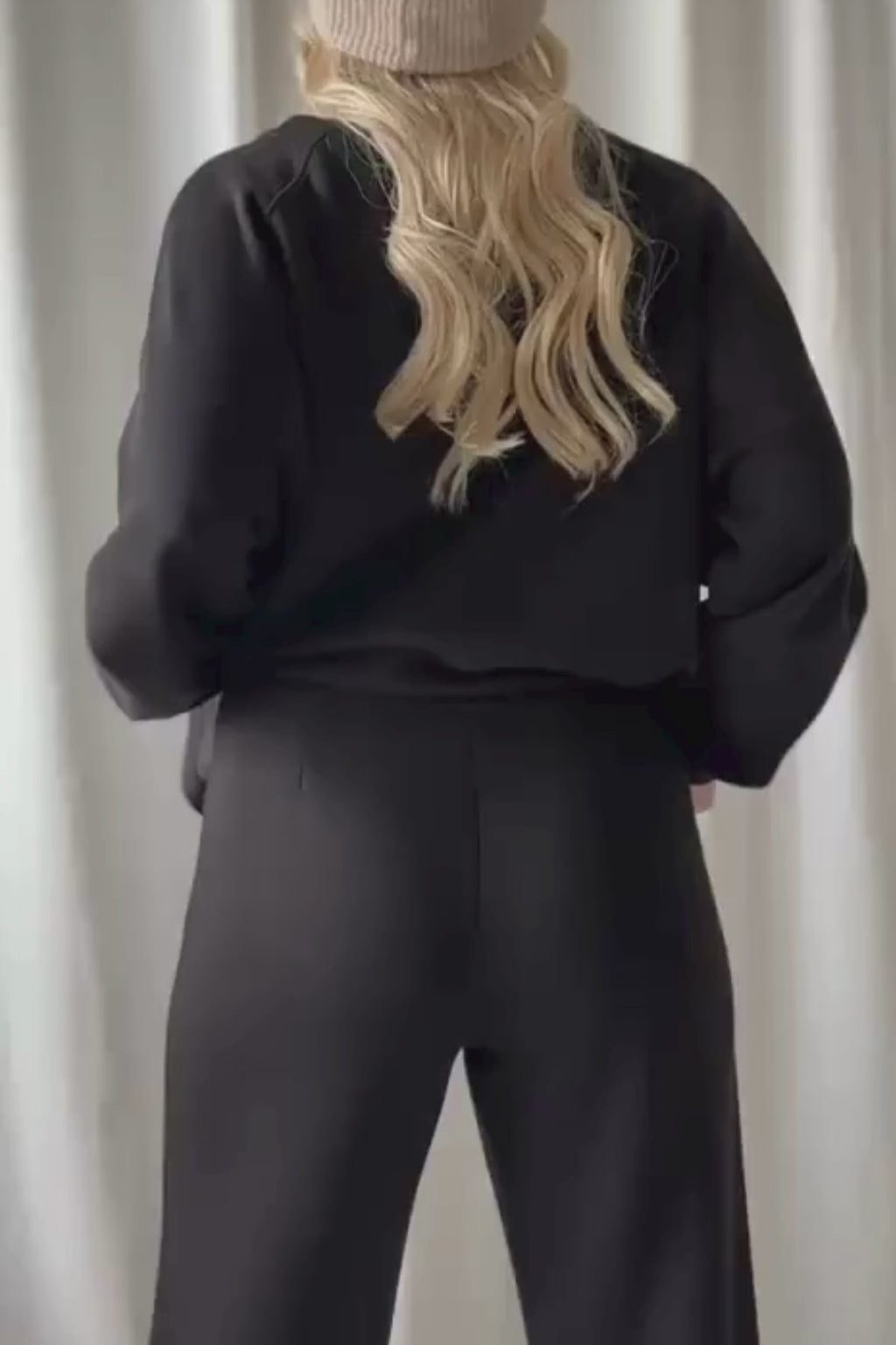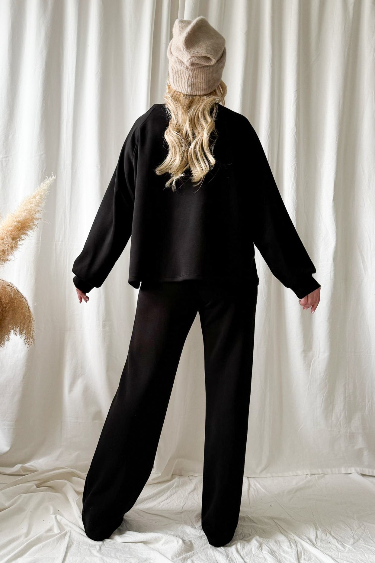 Dreamily soft loungewear pants with long, wide legs and an elastic waistband. Beautiful vertical seam detail at the front. Smooth, sweatshirt-style fabric. Perfectly relaxed yet effortlessly stylish!