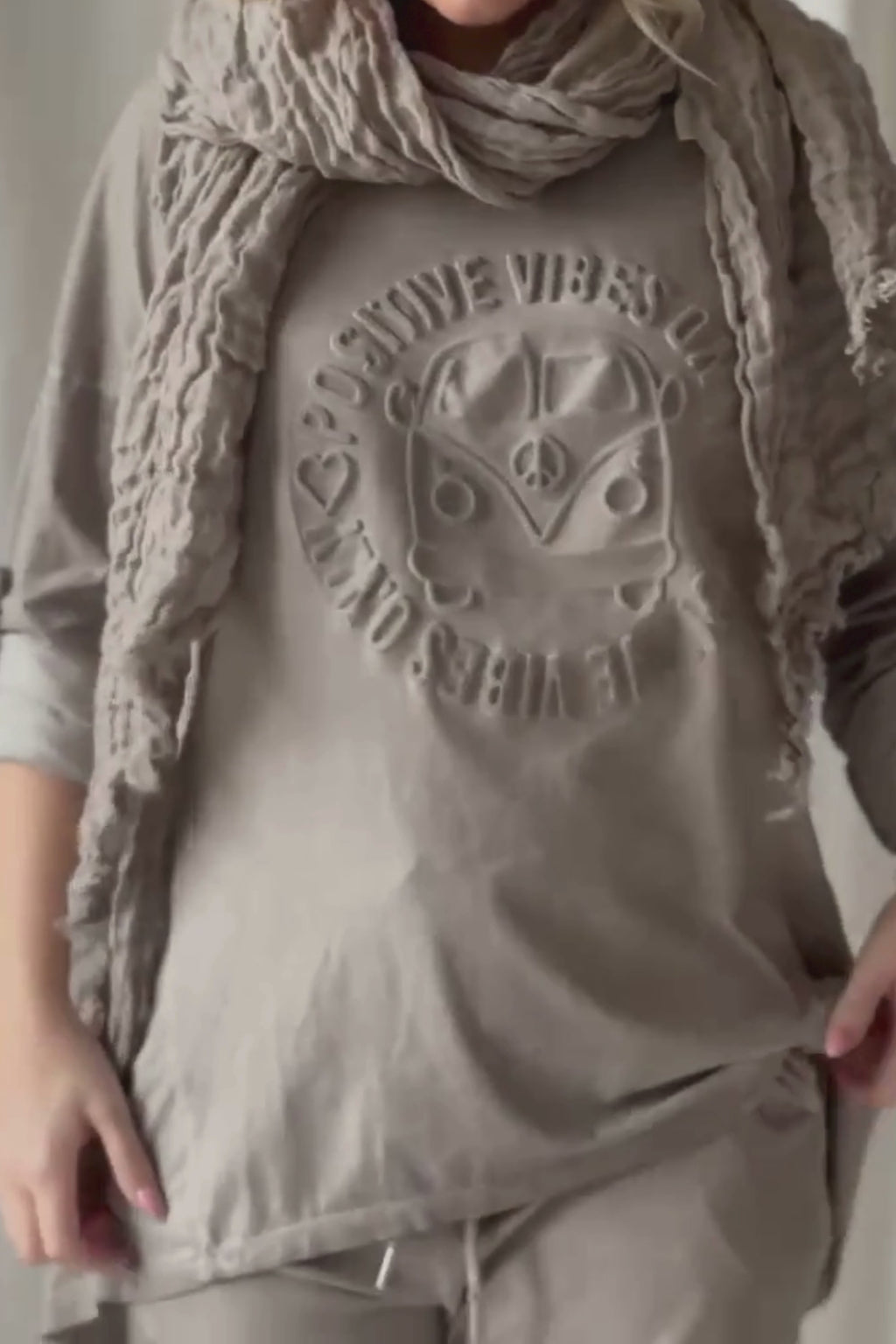 Crochet mesh scarf, taupe