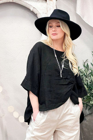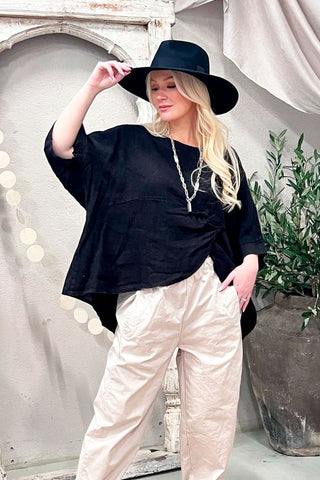 Peplum linen top, black
