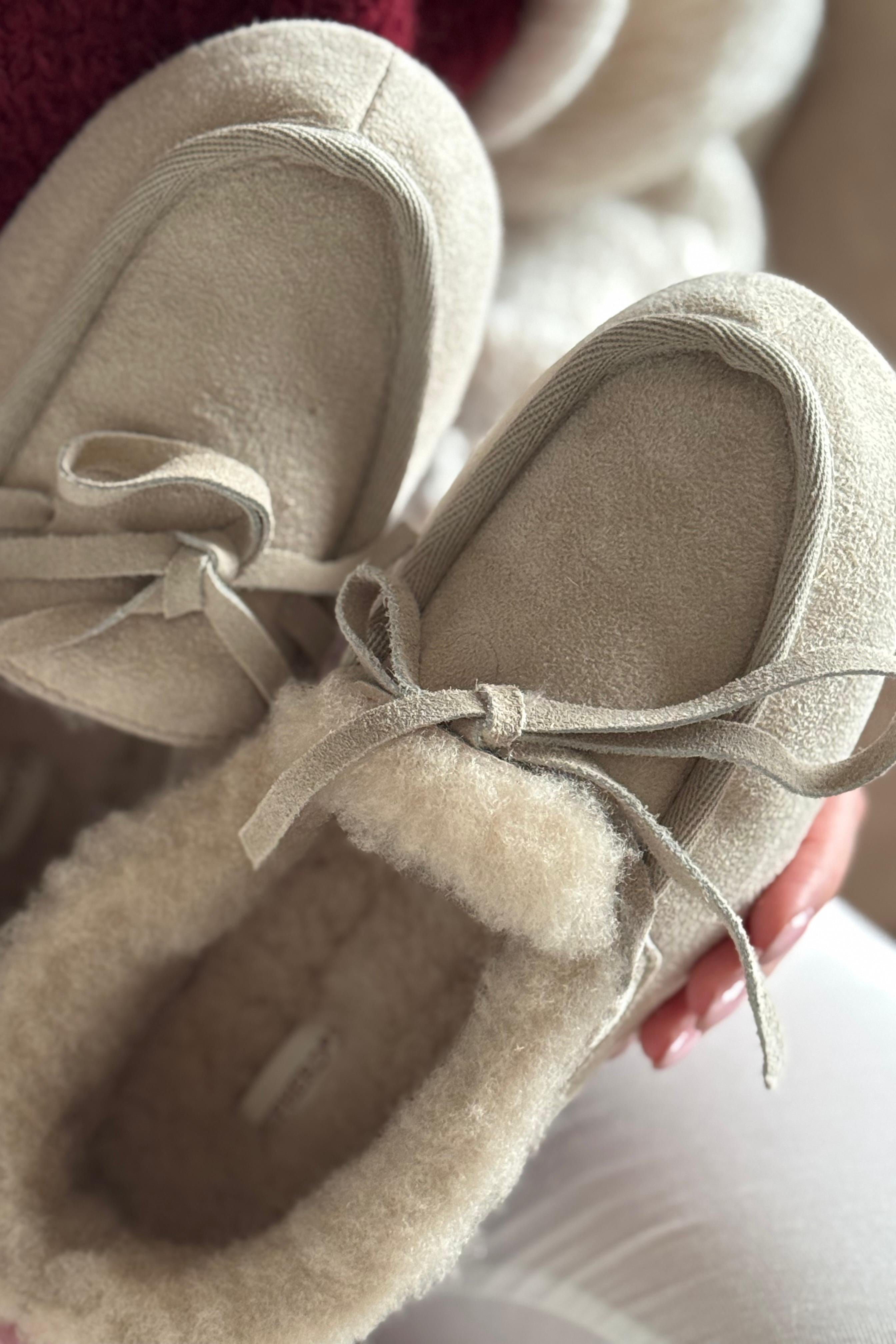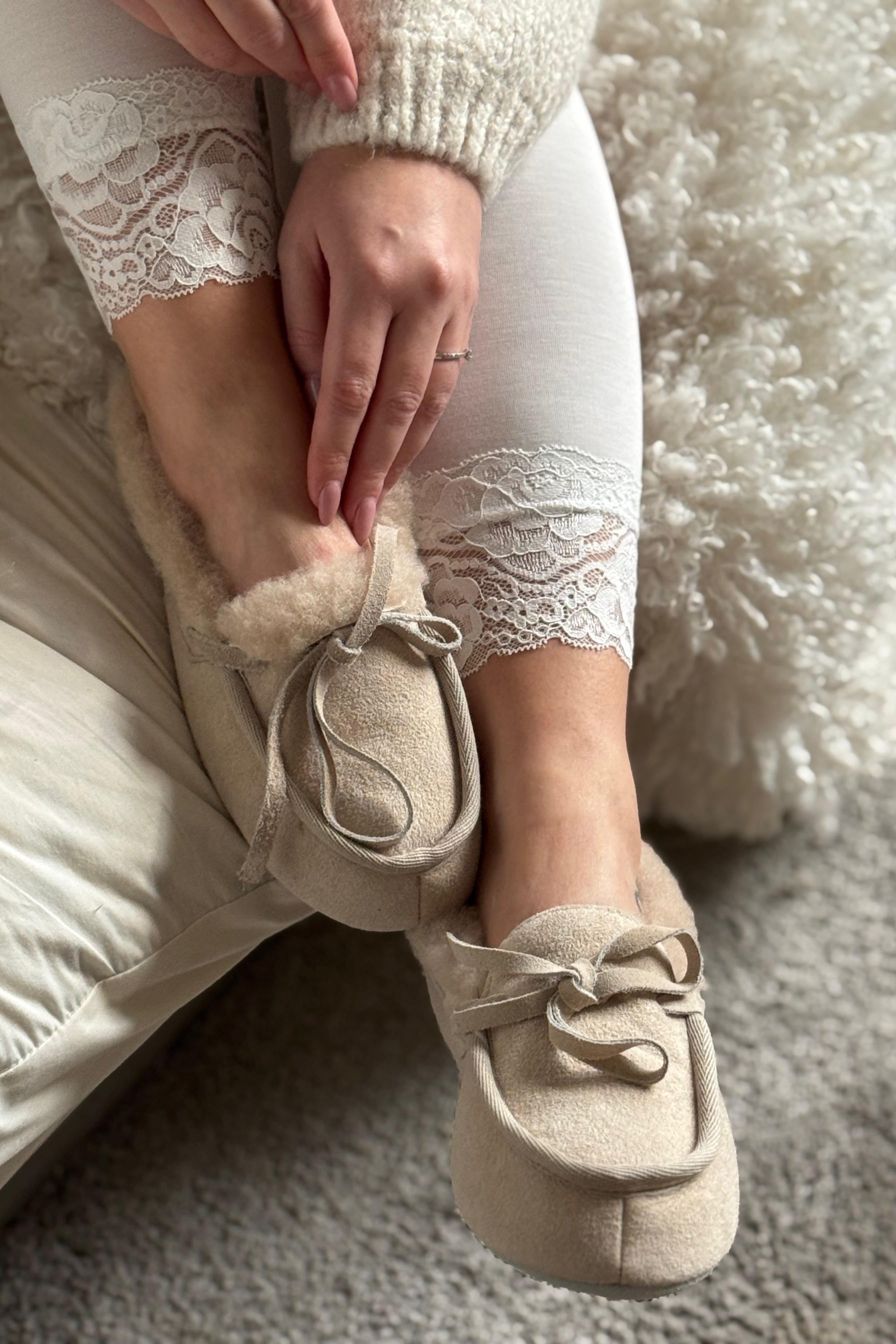 Shepherd Daisy is an elegant loafer-style slipper with classic front lacing, crafted from soft sheepskin that radiates quality and comfort. It embraces the foot gently, creating a sense of everyday luxury. A timeless indoor shoe where function meets finesse.
