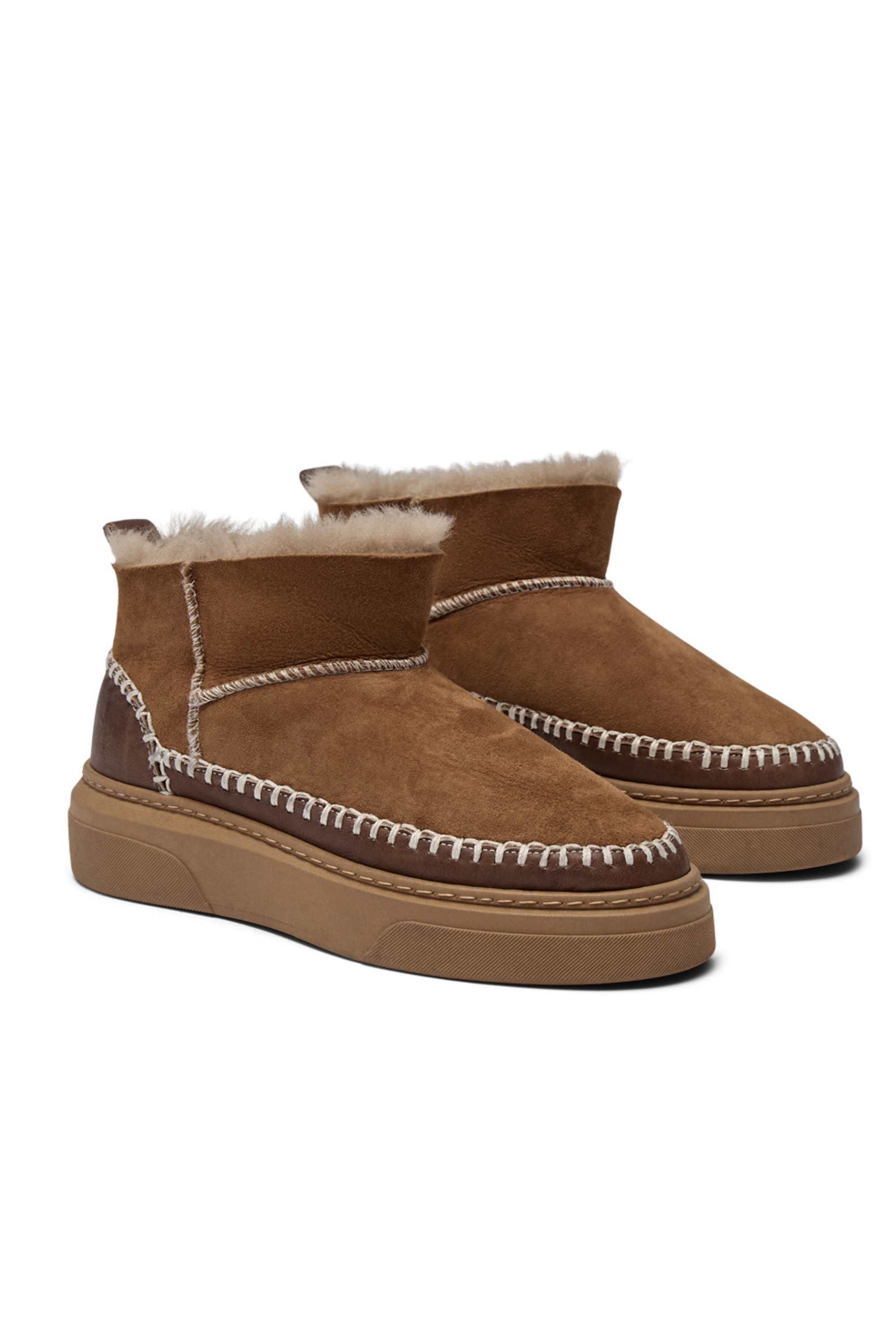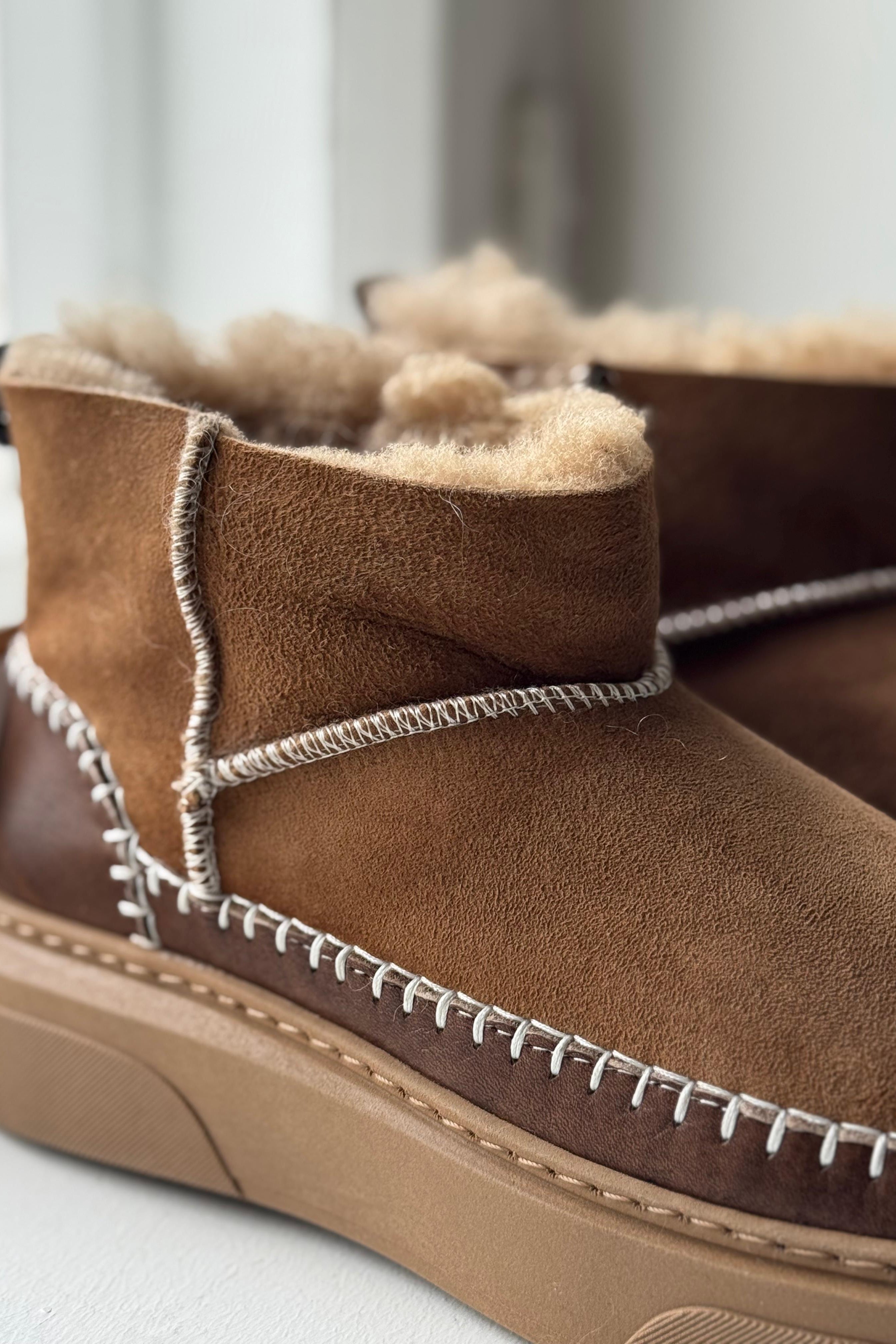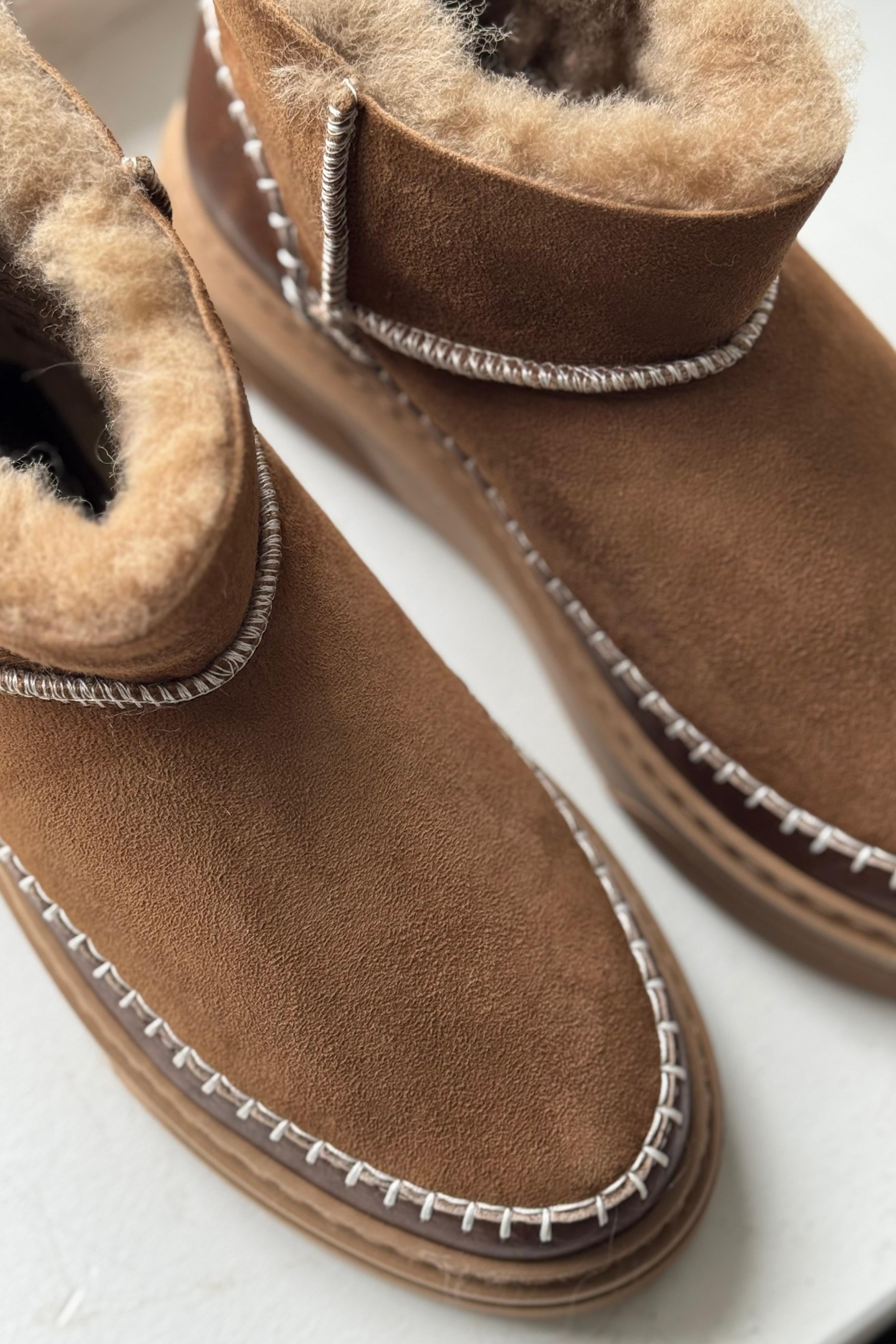 Low leather boots in double-face sheepskin will keep your feet warm! This stylish boot is soft and a chic addition to your outfit. Sturdy rubber sole, lined with plush sheep’s wool.