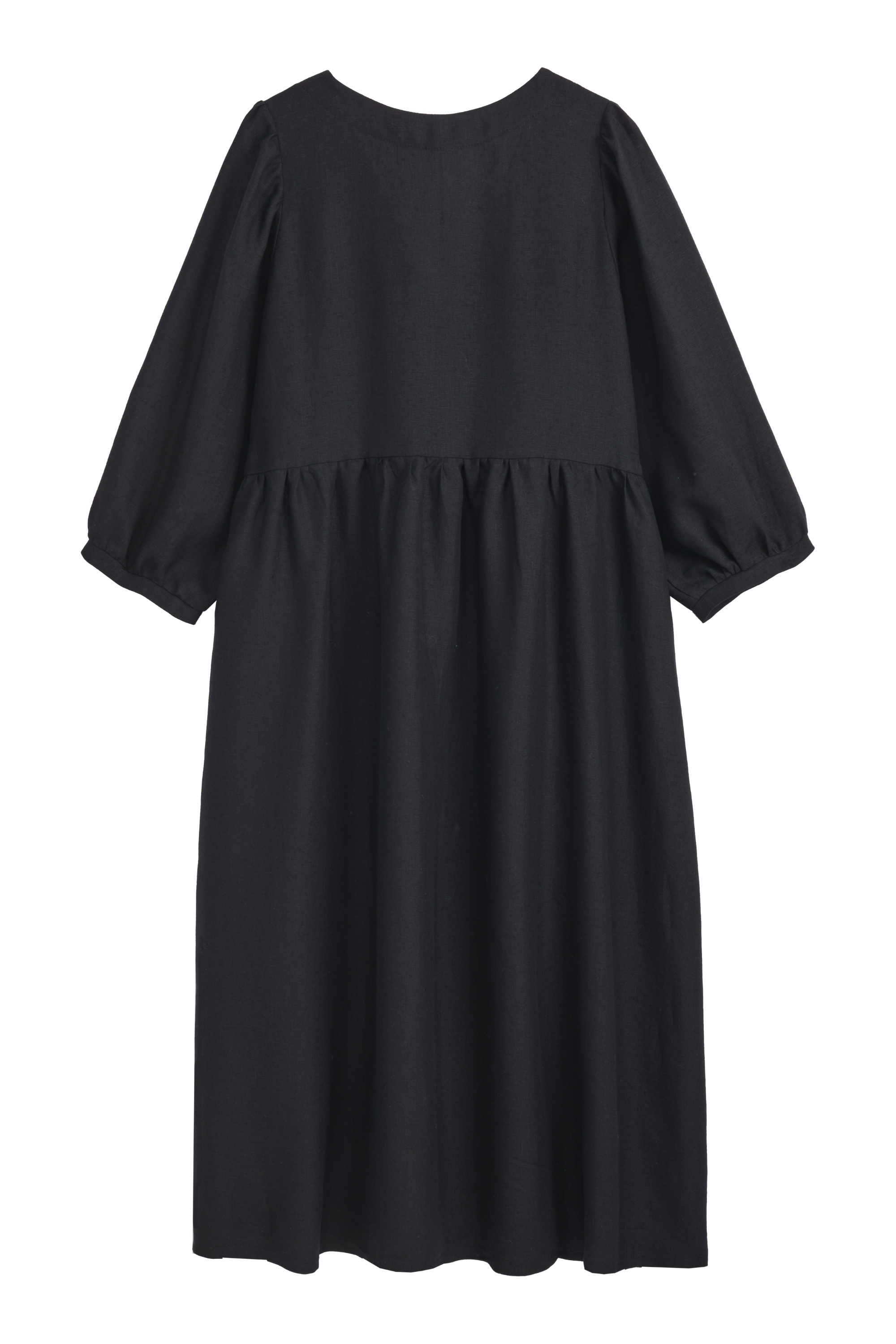 Beautiful Almira linen dress is perfect for all seasons. Try combining the dress with leather boots. V-neckline and 3/4 sleeves.