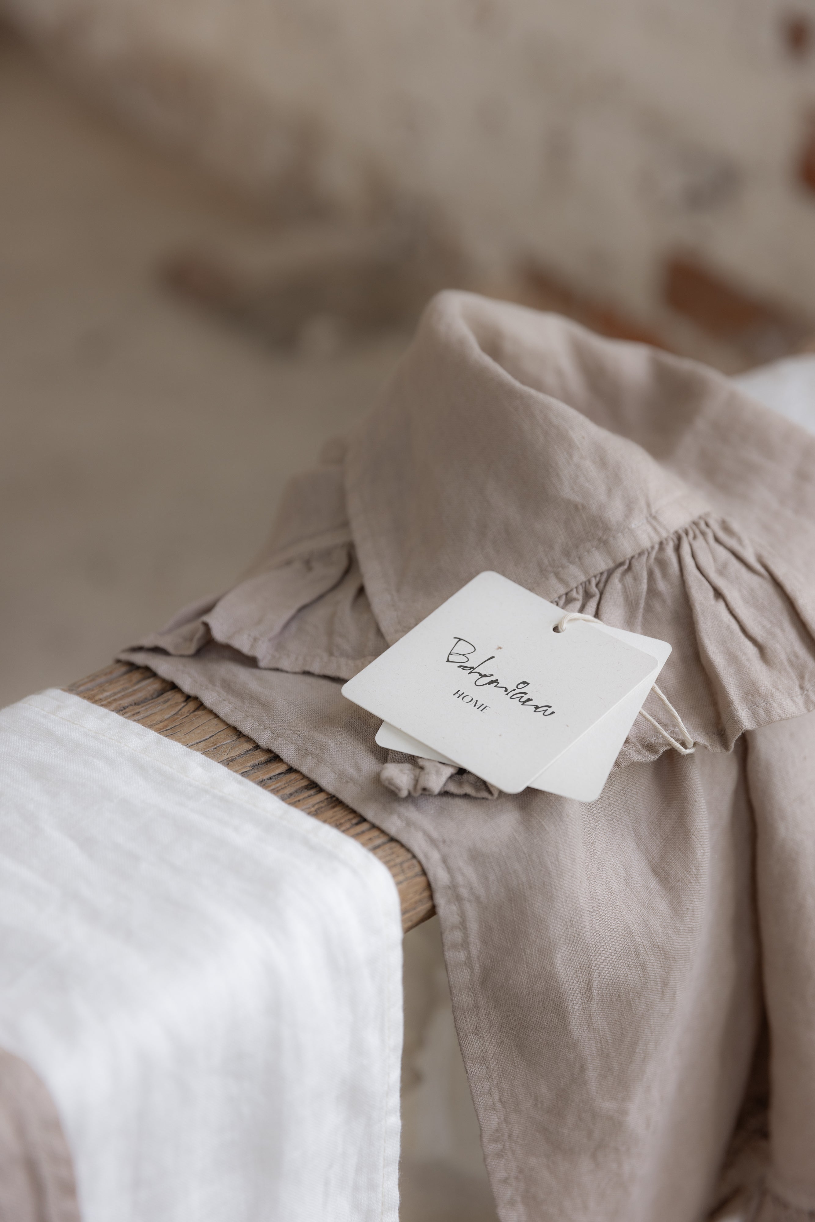The Bohemiana Home linen kitchen towel with delicate ruffled edges brings a touch of French countryside charm to your home. Timeless linen enchants with its natural texture, while the beautiful details make everyday moments feel special.