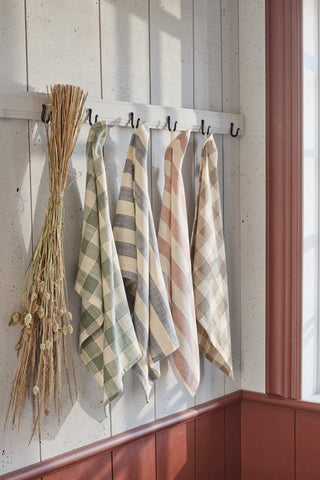 Kitchen towel made from 100% organic cotton with a classic wide-striped pattern. Band in one corner for hanging.