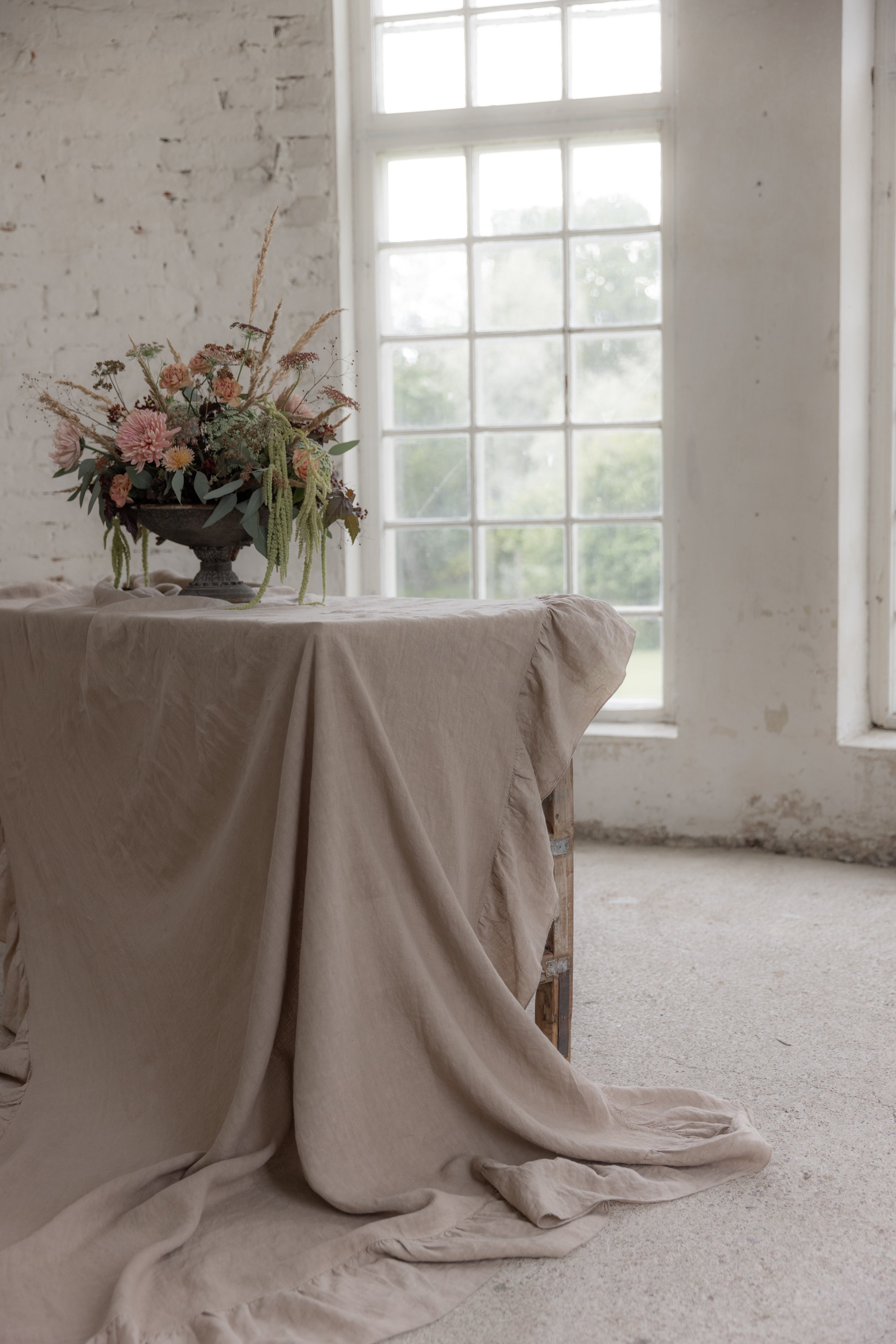 Made of 100% linen, the tablecloth drapes gracefully, enchants with its textured surface, and adds timeless elegance to any occasion. Linen improves with use and retains its natural charm year after year.