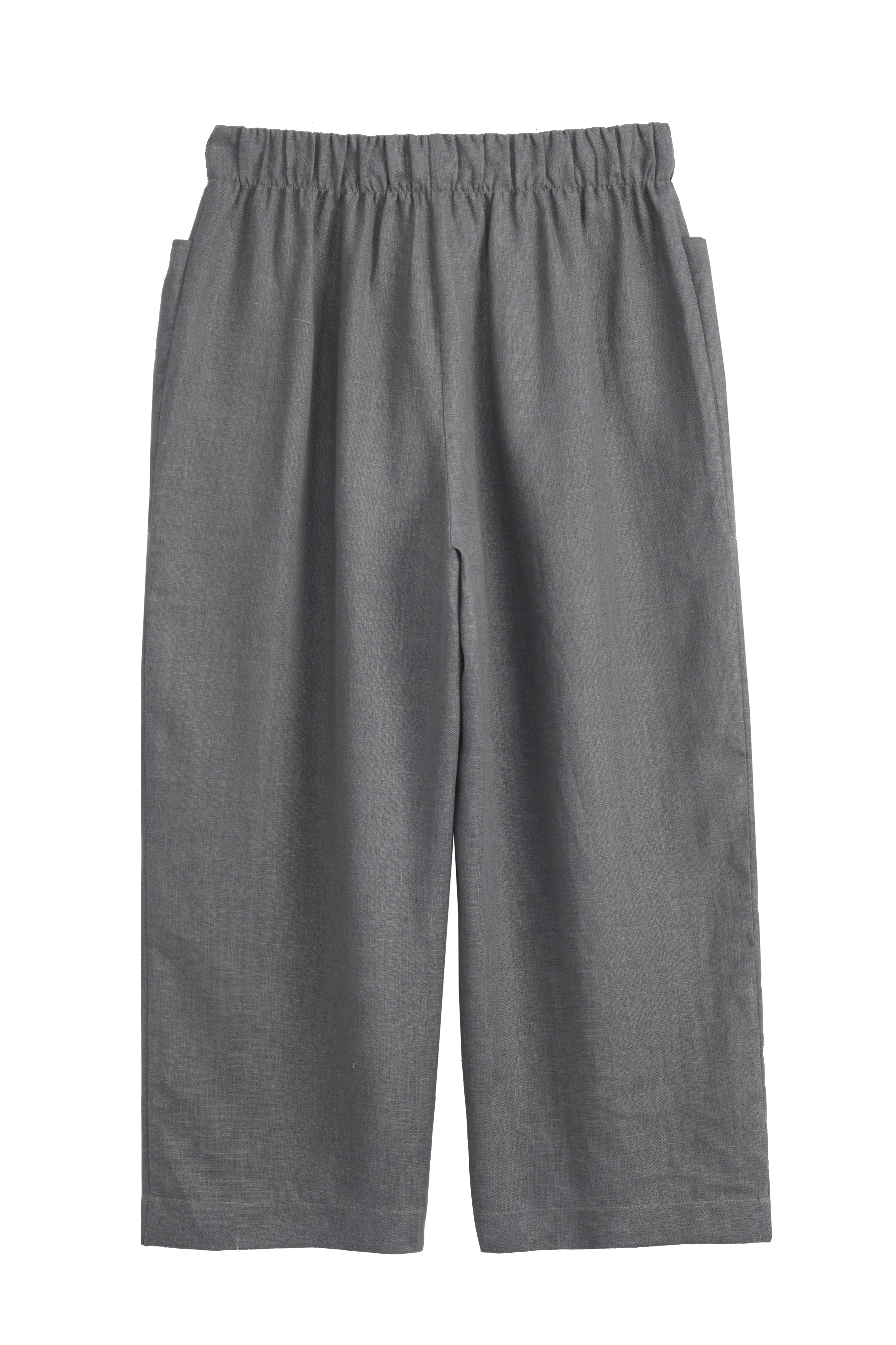 Timeless wedge-shaped linen pants with large pockets in the front and a comfortable elasticated waist. Made out of breathable and thick linen.
