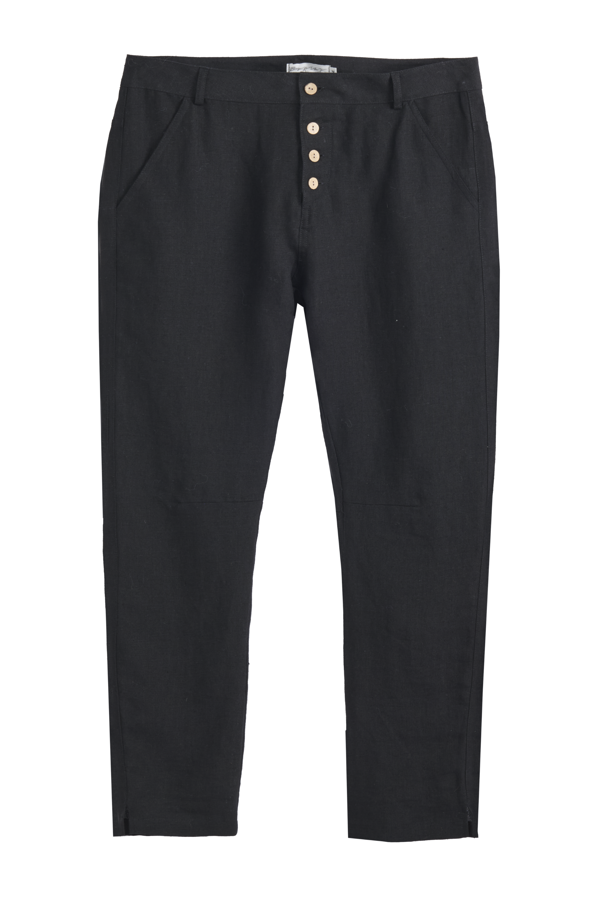 Nice buttons and back pockets placed quite low. Wonderfully comfortable, breathable and soft when worn.