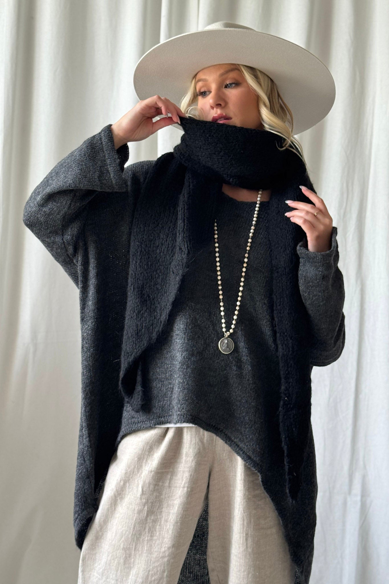 The scarf is long with asymmetrical ends that add a touch of elegant flair. Bouckle knits are made from easy-care materials and are gentle on the skin — they don’t itch.