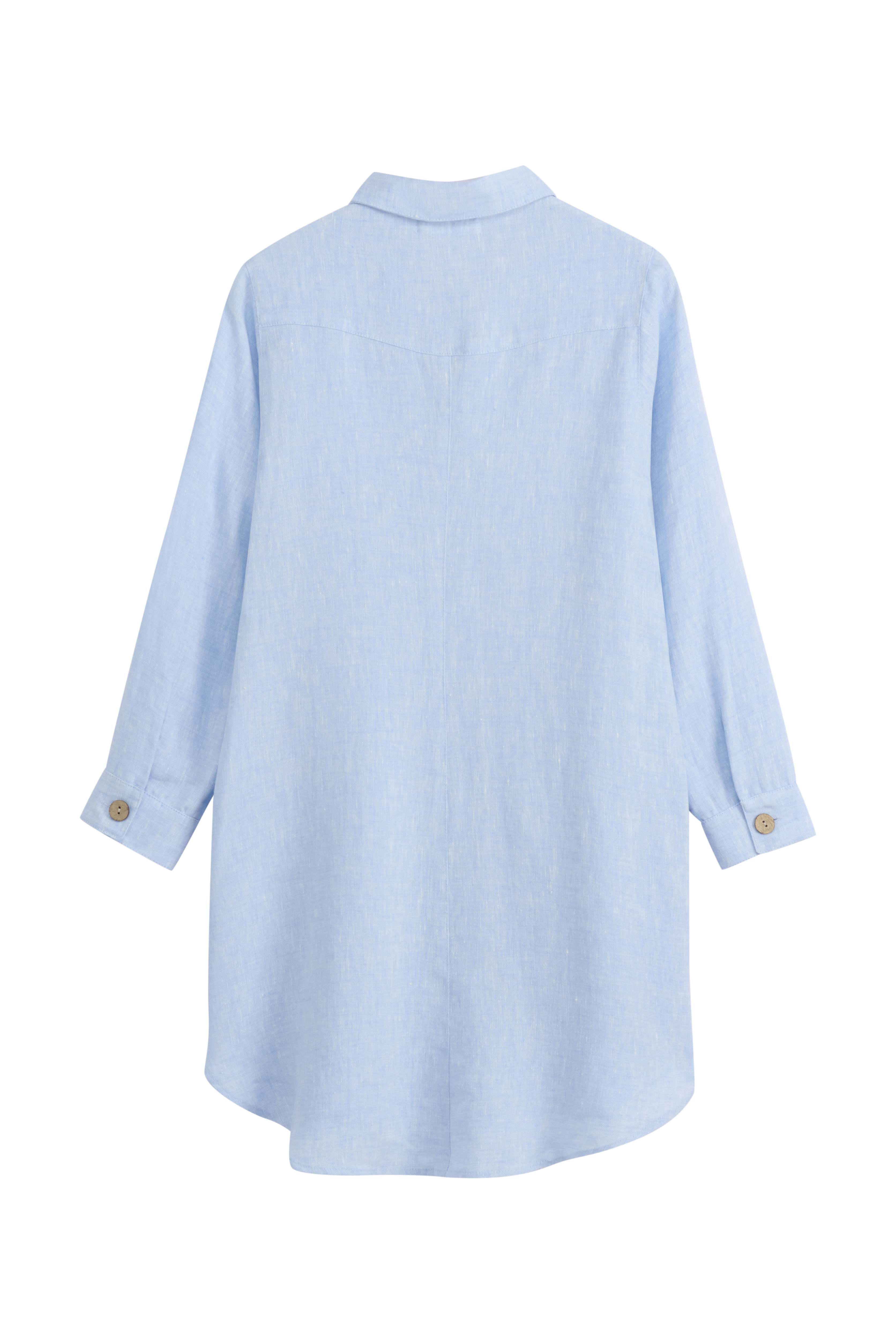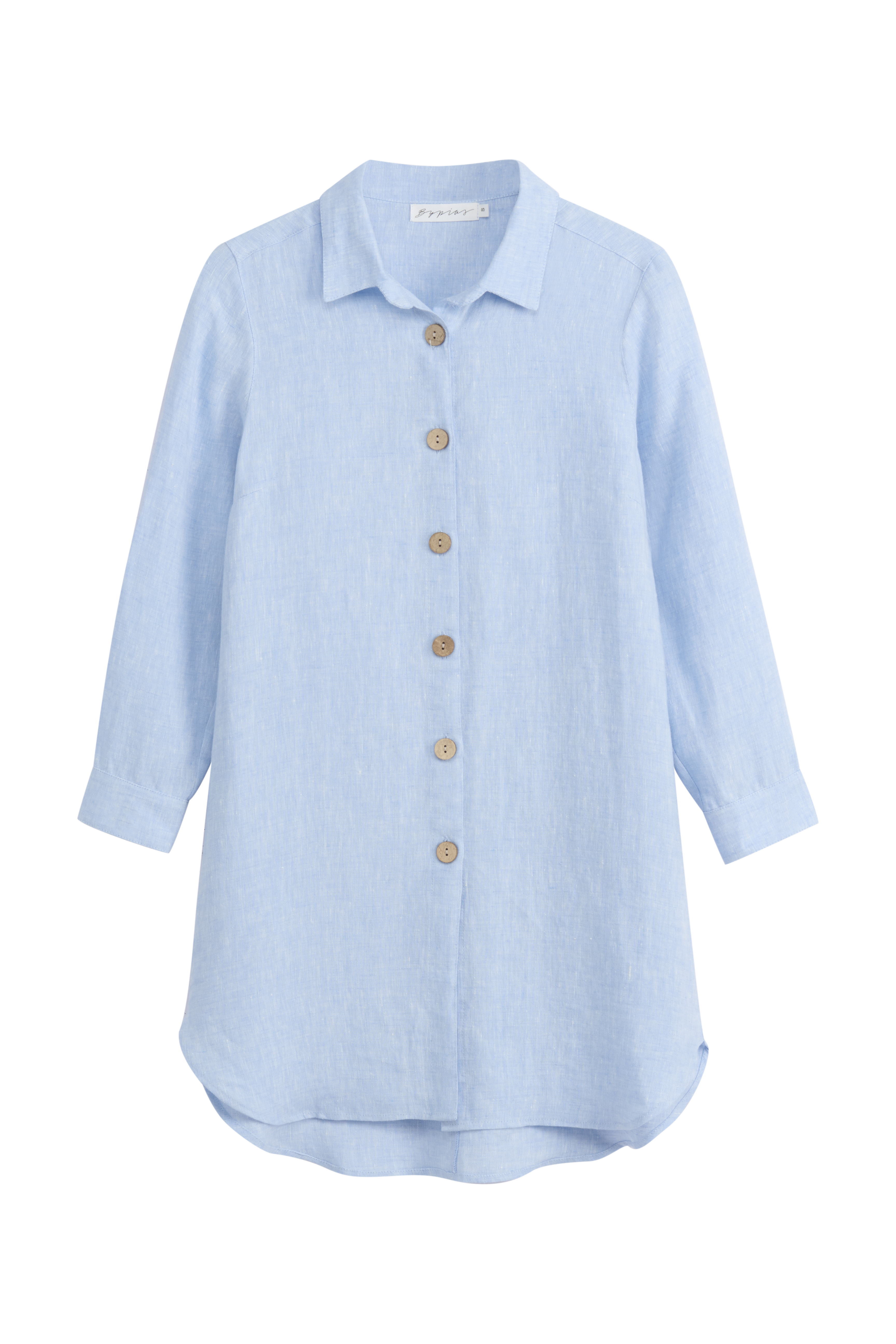 Mia is a casual, long linen shirt with 3/4 sleeves. Also works well as a casual jacket.