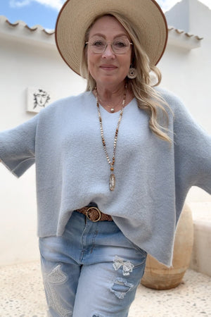 This airy and soft mohair knit adds a touch of luxury to your wardrobe. The beautifully draping design and V-neckline create a timeless and effortlessly chic look. Short sleeves and a fun, boxy cut make it perfect for layering or wearing on its own.