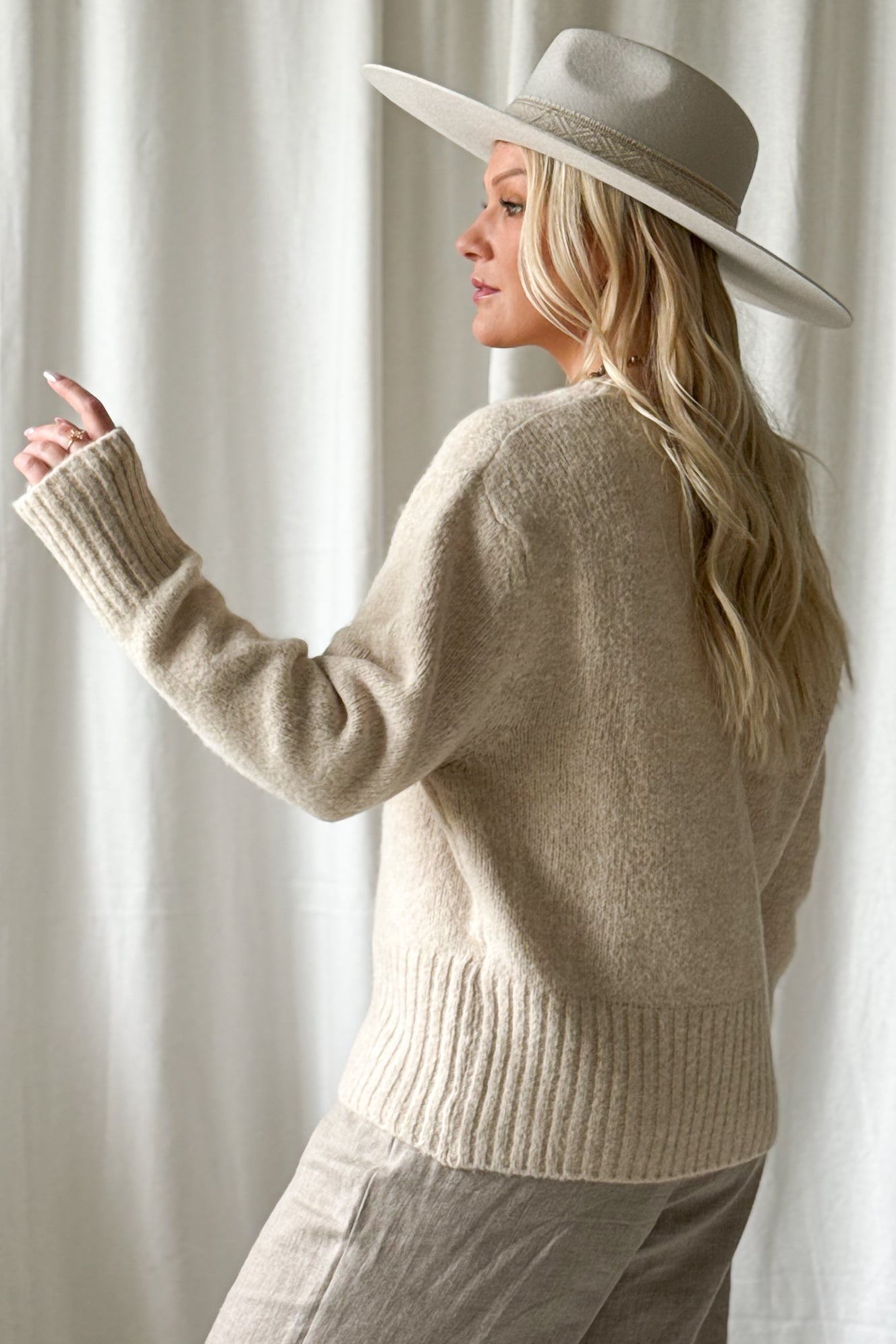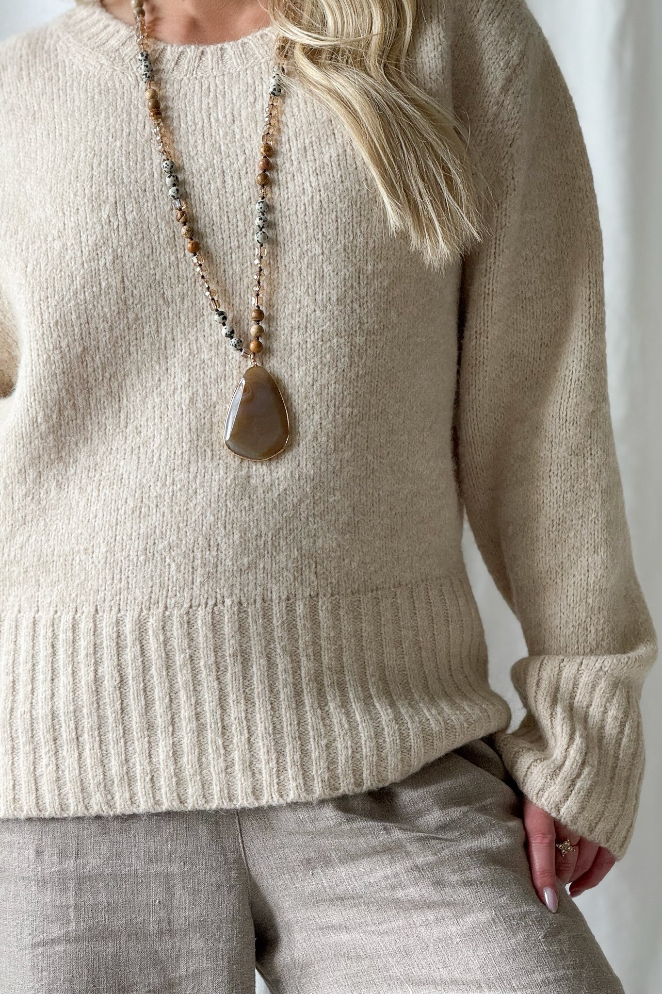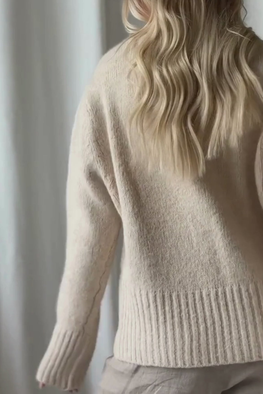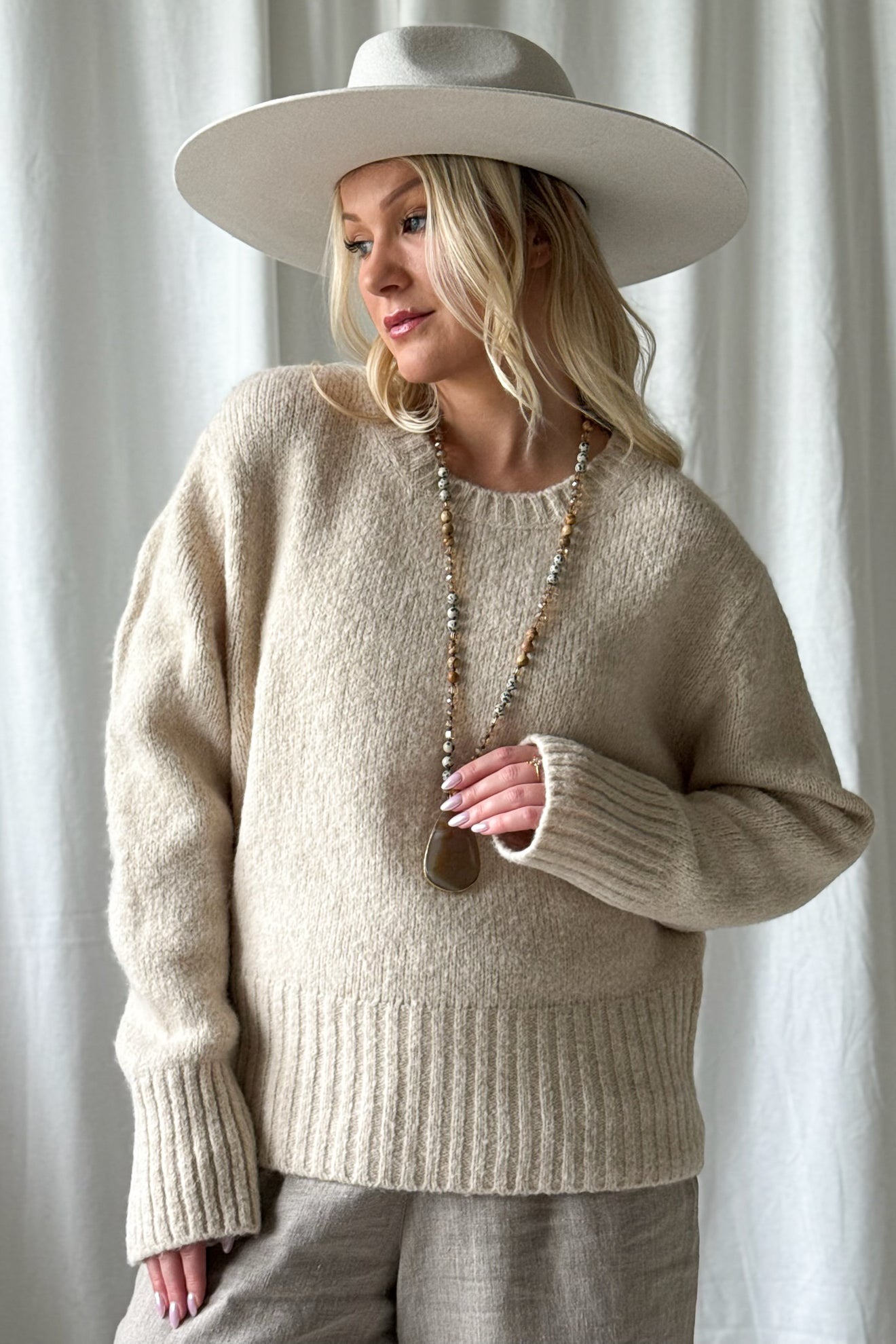 Wonderfully soft and luxurious knit sweater with a round neckline and slightly wider ribbed cuffs and hem. This warm and densely knitted sweater is also perfect for layering over dresses and long blouses.