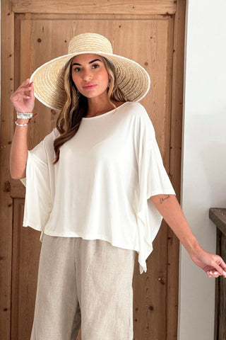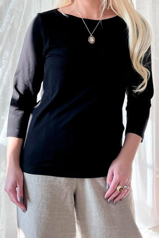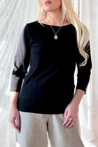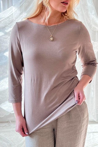 Soft Bamboo blouse with boat collar. The elastic and luxuriously lightweight material feels wonderfully soft on skin.
