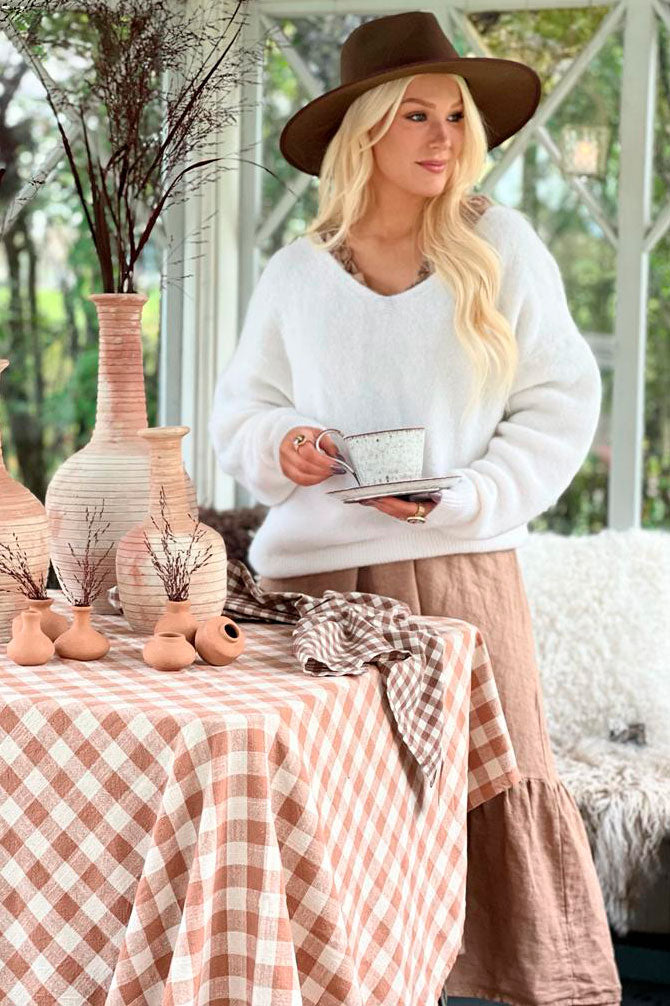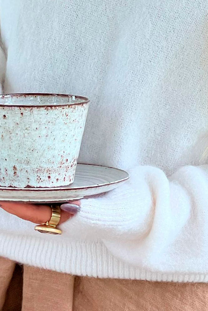 Luxuriously soft and high-quality alpaca blend jumper with v-neck collar and lowered shoulder line. The alpaca blend is also suitable for those who get itchy with wool.