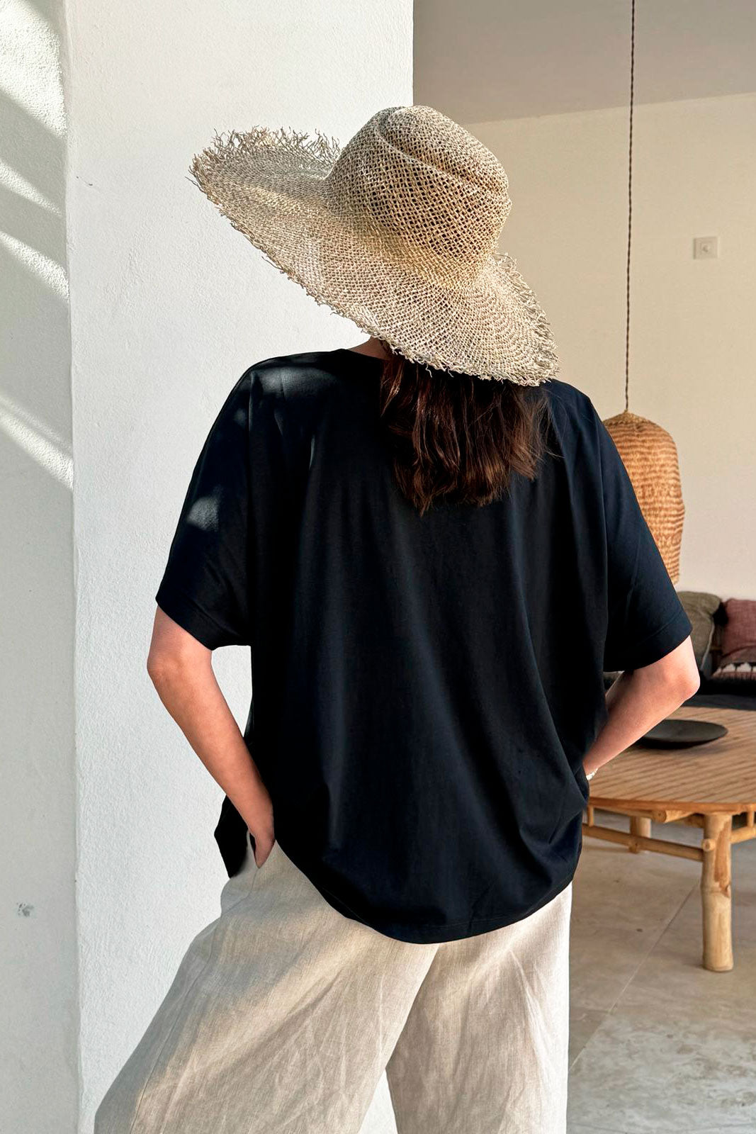 Paita mukava, tarpeeksi iso tiukan alaosan kanssa ja teksti antaa siihen kivan ilmeen. Käytän sitä todella paljon ja ajattelin tilata vielä valkoisen kesäksi