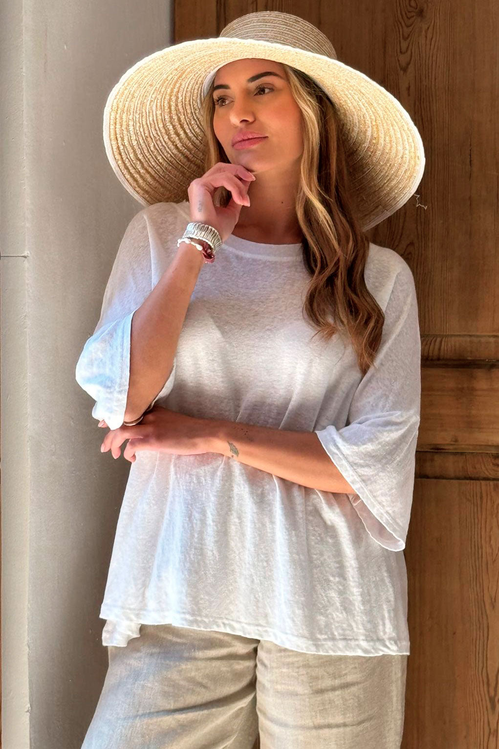 Tricot-like t-shirt in light linen.