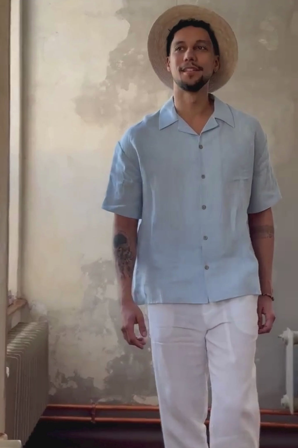 Men's short-sleeved and slightly loose-fitting shirt with a chest pocket. The gorgeous, luxurious and soft-washed linen fabric is in a class of its own on the skin! Breathable and easy-care.