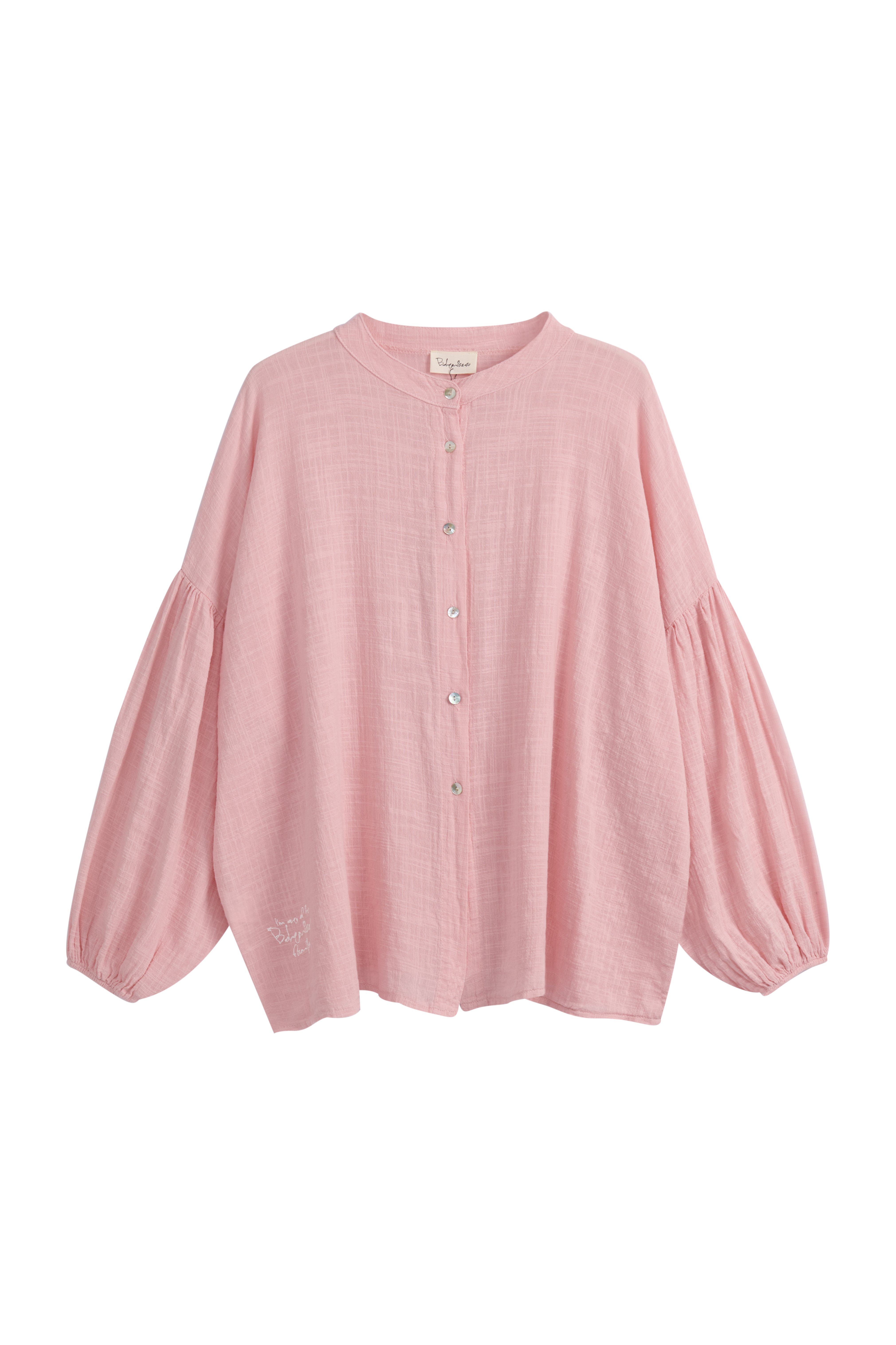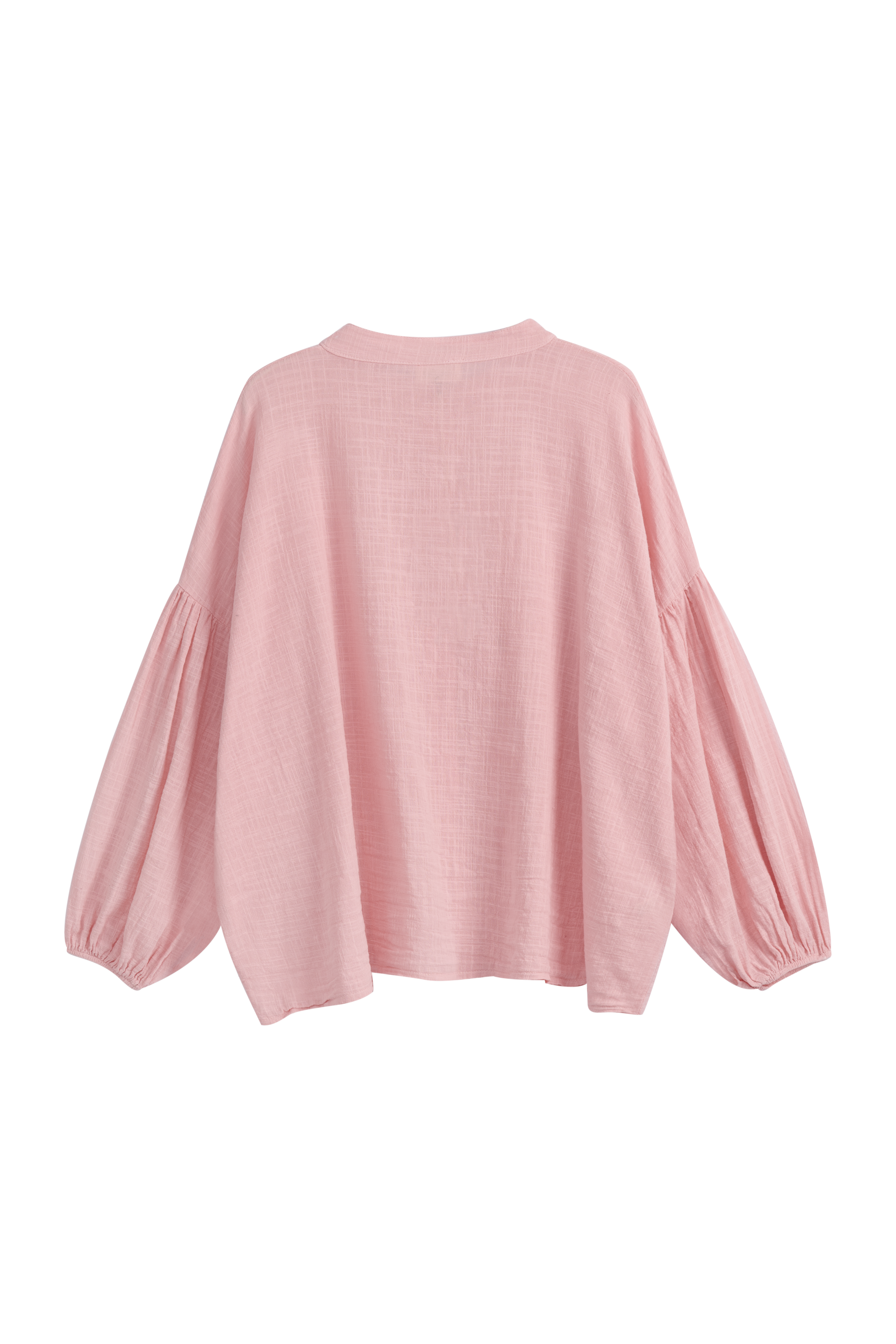 The relaxed and airy Chalky is made from lovely crochet-style cotton. The rounded hem, dropped shoulders and puffy sleeves make this a versatile shirt. Accessorize with lovely pendants and light scarves.