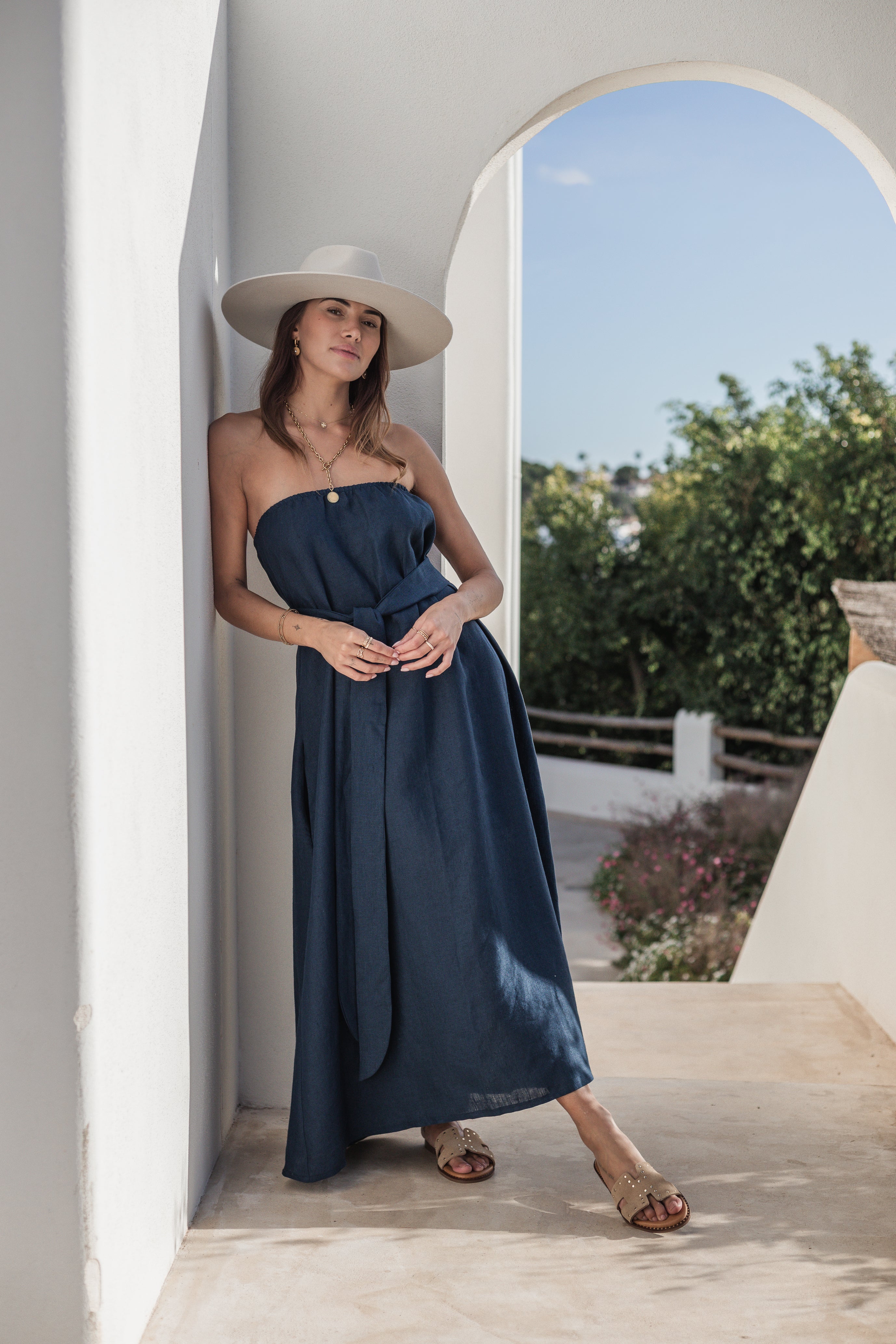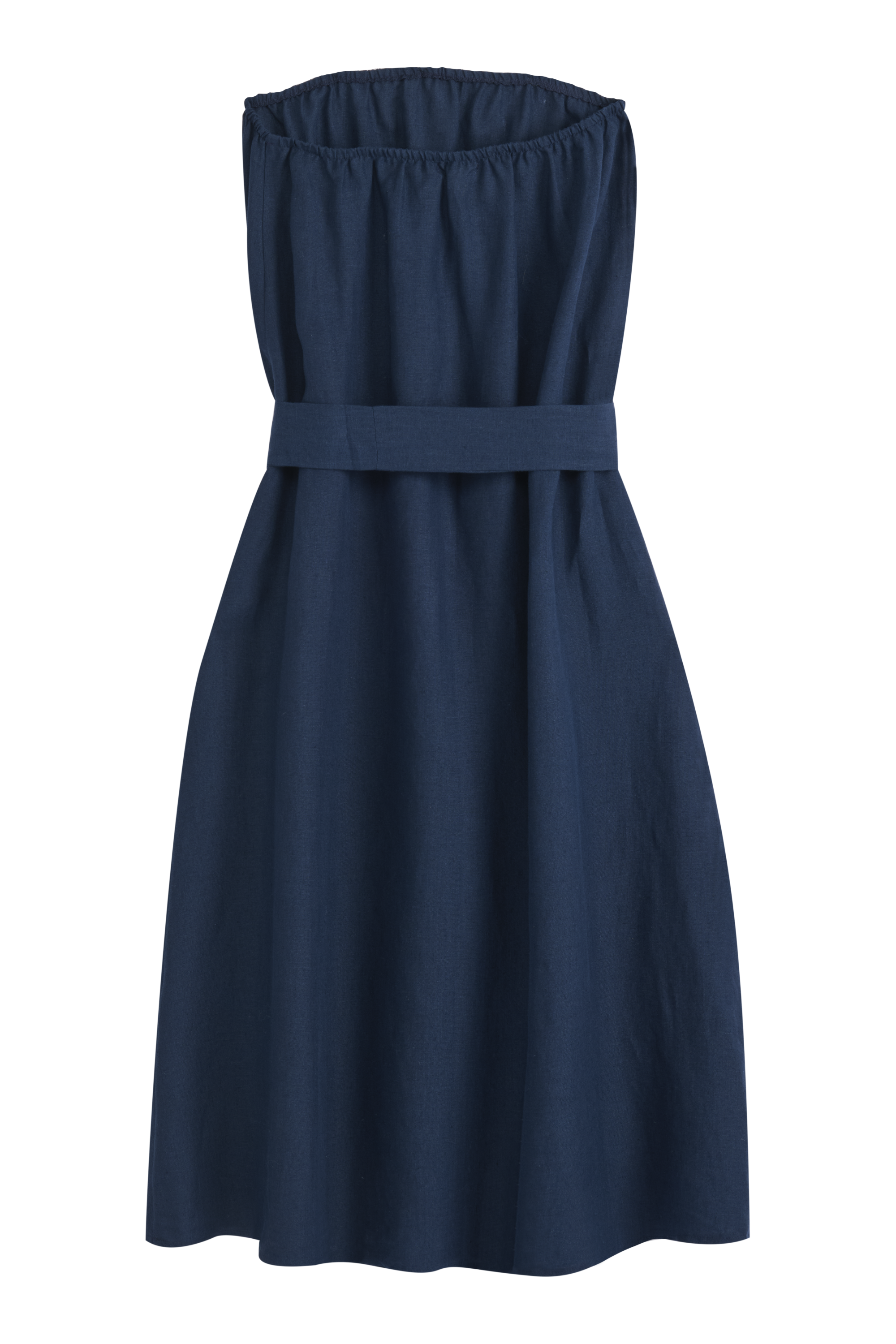Light and airy strapless linen dress. The removable belt allows you to accentuate the waist as desired. Side pockets add practicality. An easy and stylish choice for summer days.