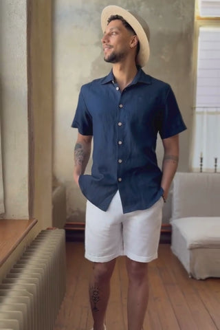 The short-sleeved JOHAN is made with the same pattern as the collared shirt JOHN. The model is trendy, classic, but a bit slim fit, which is suitable casually with the sleeves rolled up for everyday life as well as festively with a suit. The wonderful, luxurious and soft washed linen fabric is in a class of its own on the skin! Breathable and easy to care for.