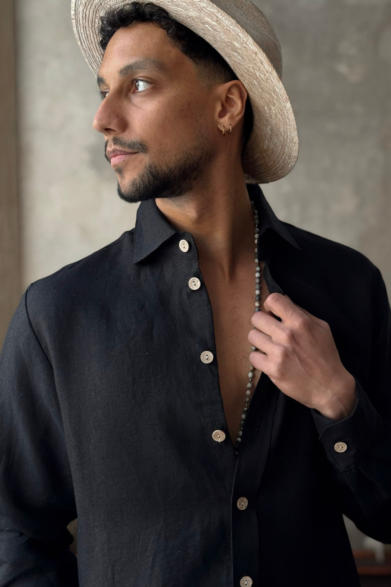 The JOHN shirt features a trendy, classic, and slightly slim fit design, perfect for casual wear with sleeves rolled up or elegantly paired with a suit. The shirt includes a practical chest pocket. The beautiful, luxurious, and soft-washed linen fabric is truly exceptional against the skin! Breathable and easy to care for.