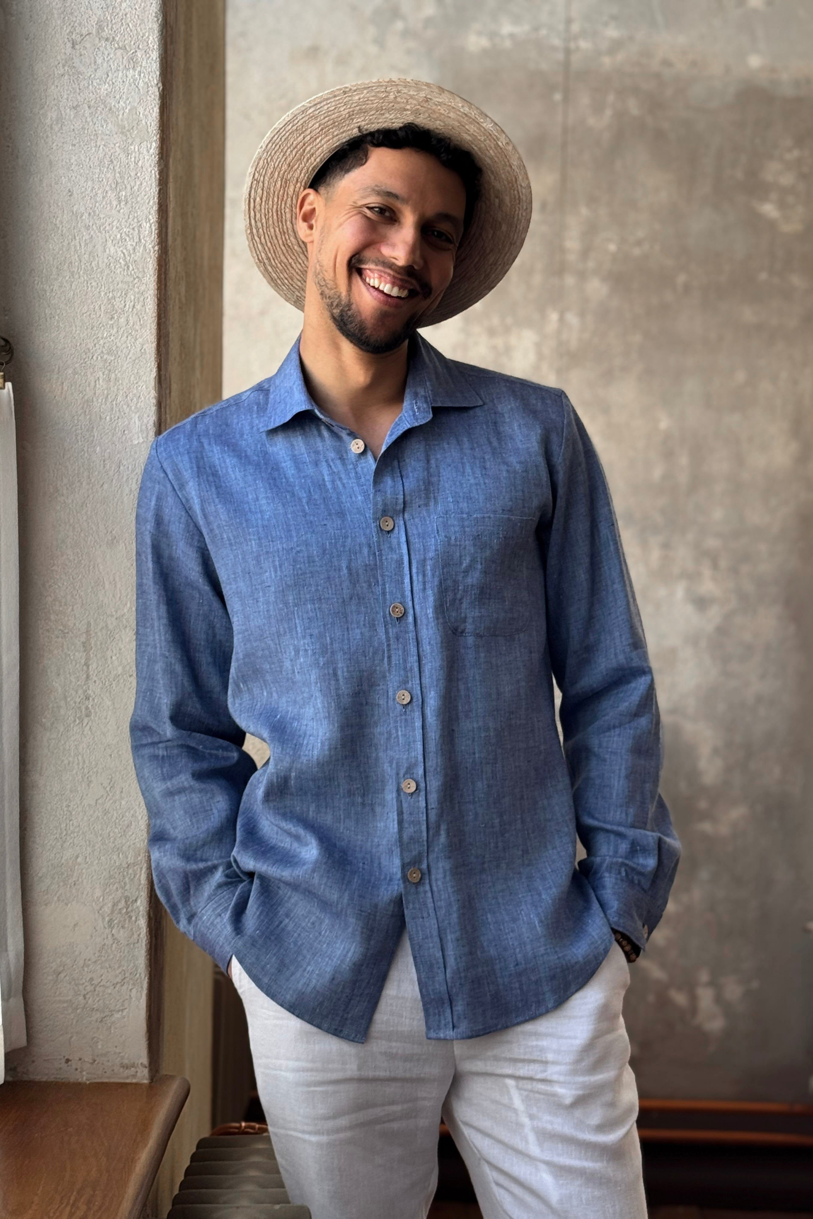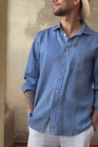 The JOHN shirt features a trendy, classic, and slightly slim fit design, perfect for casual wear with sleeves rolled up or elegantly paired with a suit. The shirt includes a practical chest pocket. The beautiful, luxurious, and soft-washed linen fabric is truly exceptional against the skin! Breathable and easy to care for.