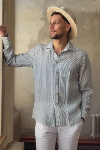 The JOHN shirt features a trendy, classic, and slightly slim fit design, perfect for casual wear with sleeves rolled up or elegantly paired with a suit. The shirt includes a practical chest pocket. The beautiful, luxurious, and soft-washed linen fabric is truly exceptional against the skin! Breathable and easy to care for.