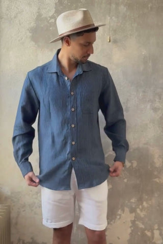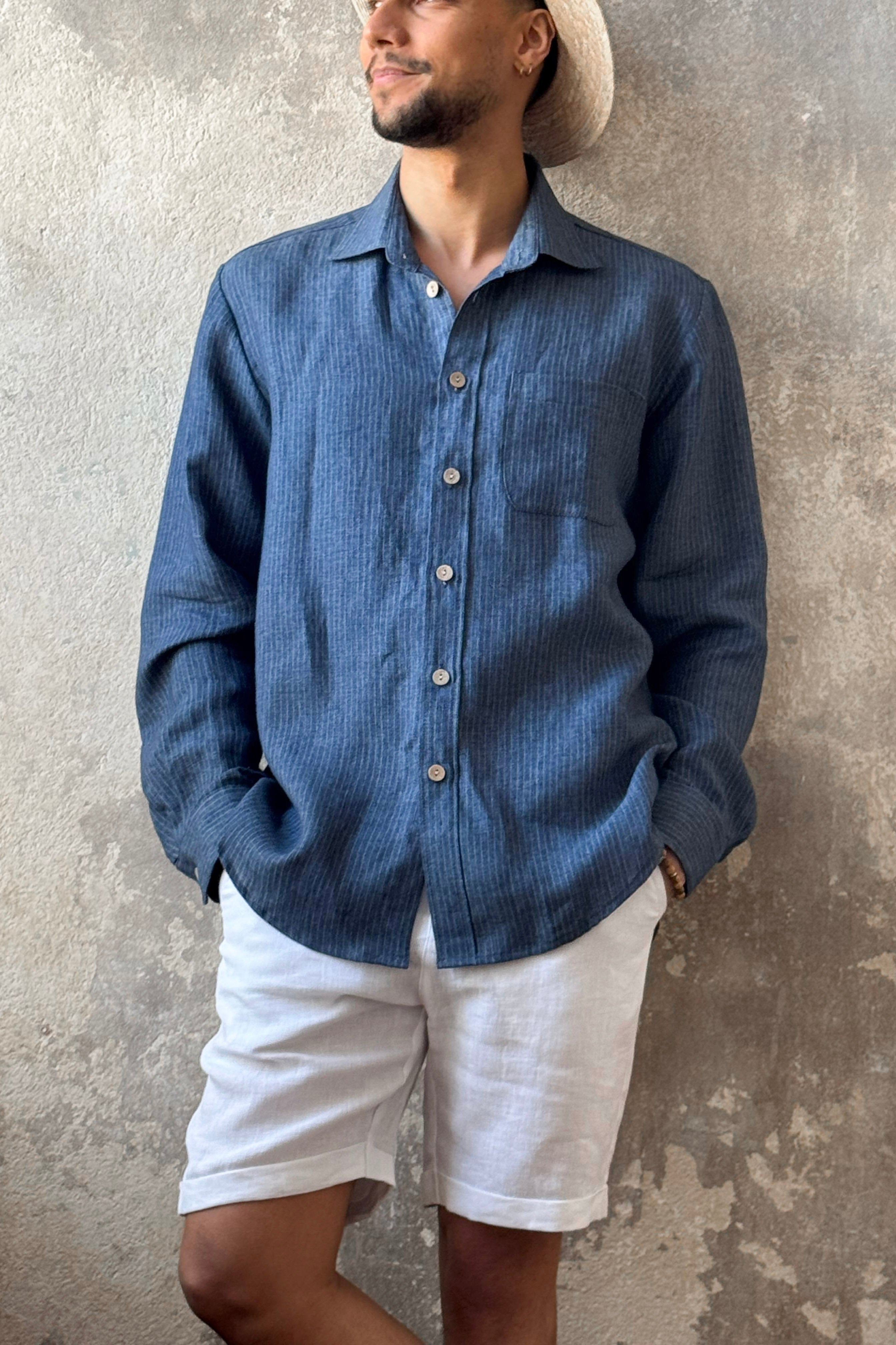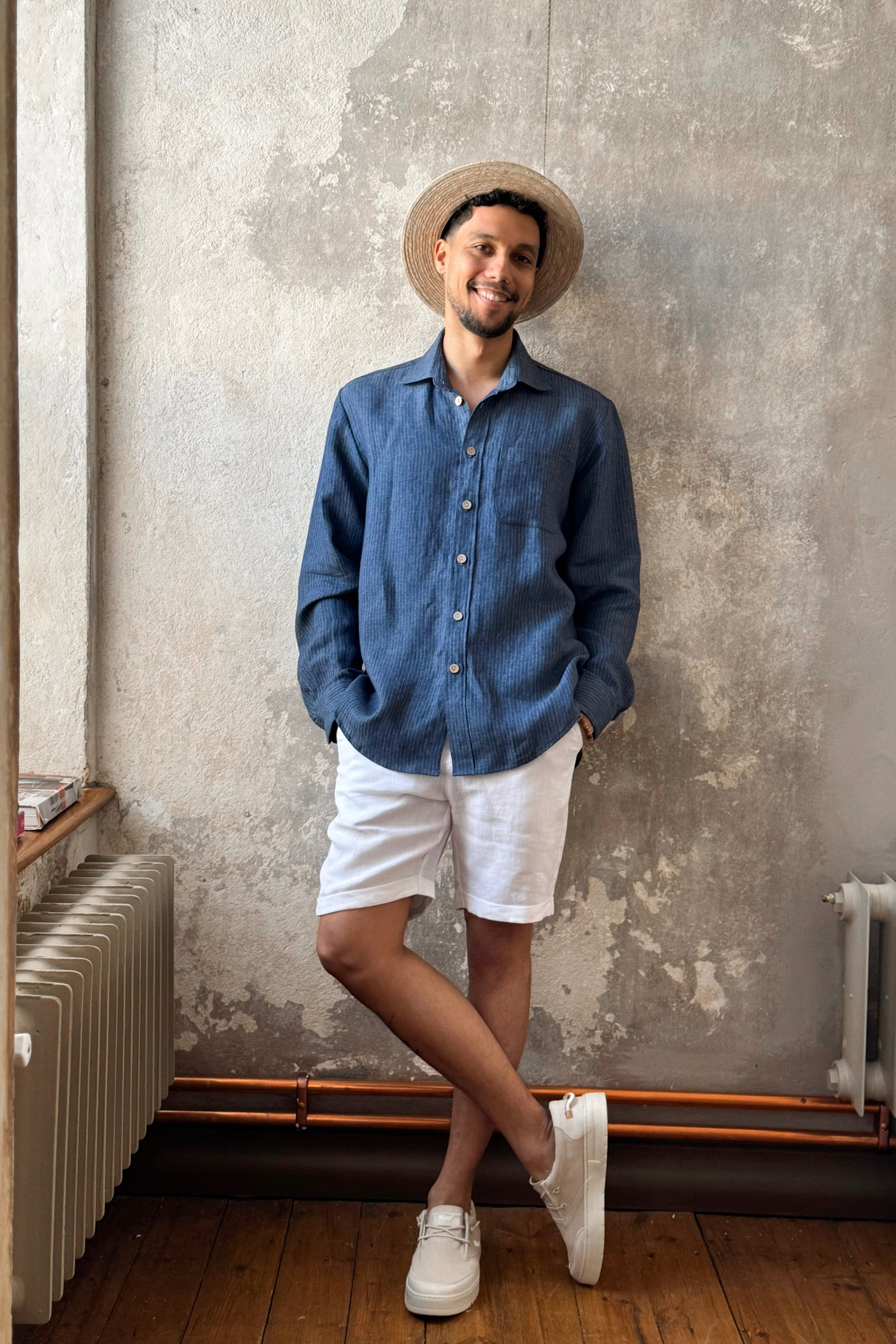 John linen shirt, denim stripe