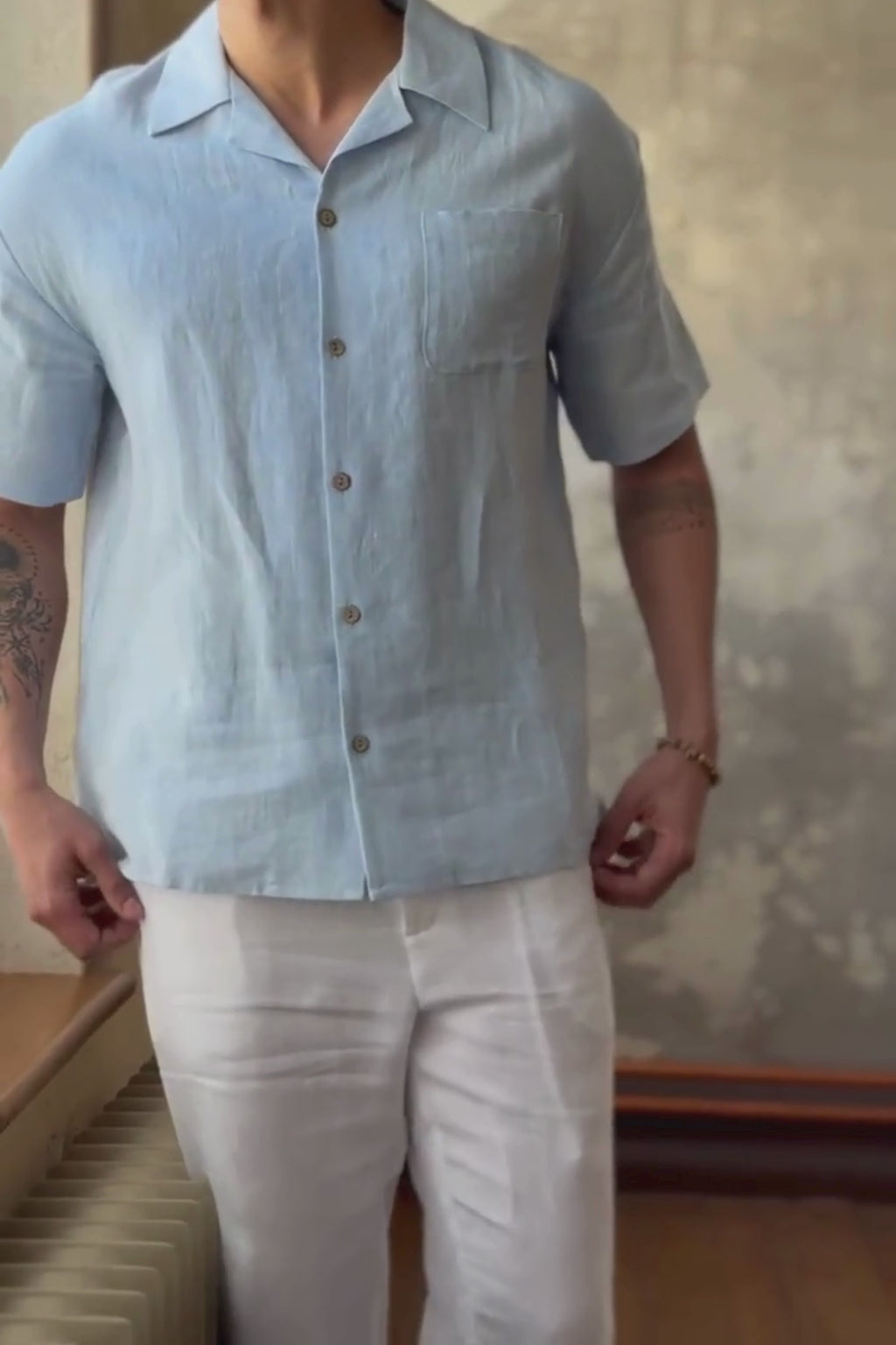 Men's stylish linen trousers are perfect for a casual, stylish look. The trousers have a zipper closure and one button. The trousers have side and back pockets. The back of the waist has a slightly stretchy elastic band and the inside of the trousers has drawstrings that allow you to adjust the fit of the trousers to suit your needs. The trousers also have belt loops.