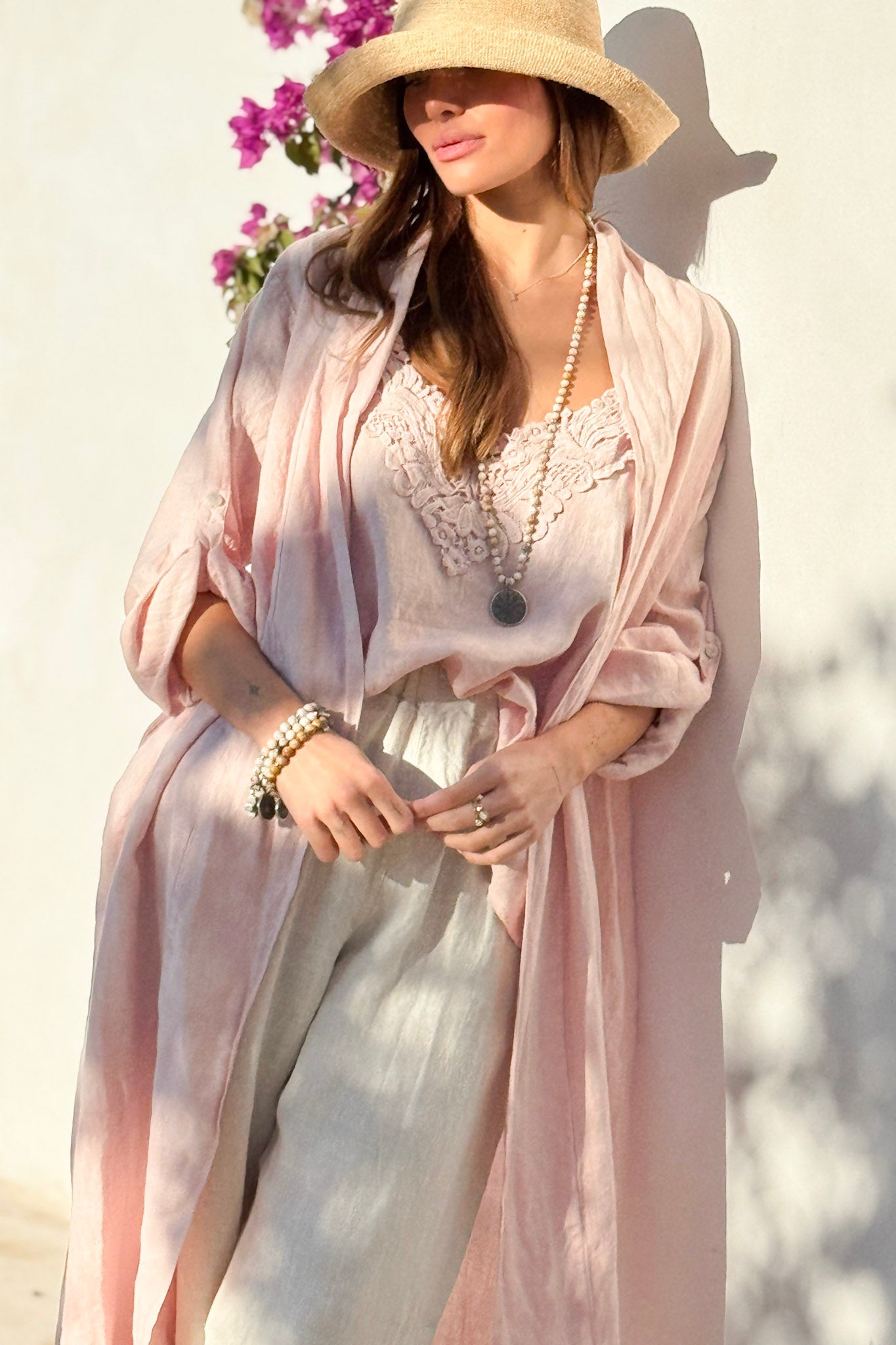 Lightweight and airy linen jacket made from beautifully breathable linen, featuring a crocheted lace detail on the back. A loose, softly draped fit and rolled-up, mid-length sleeves with button fastening create an easy, timelessly stylish design.