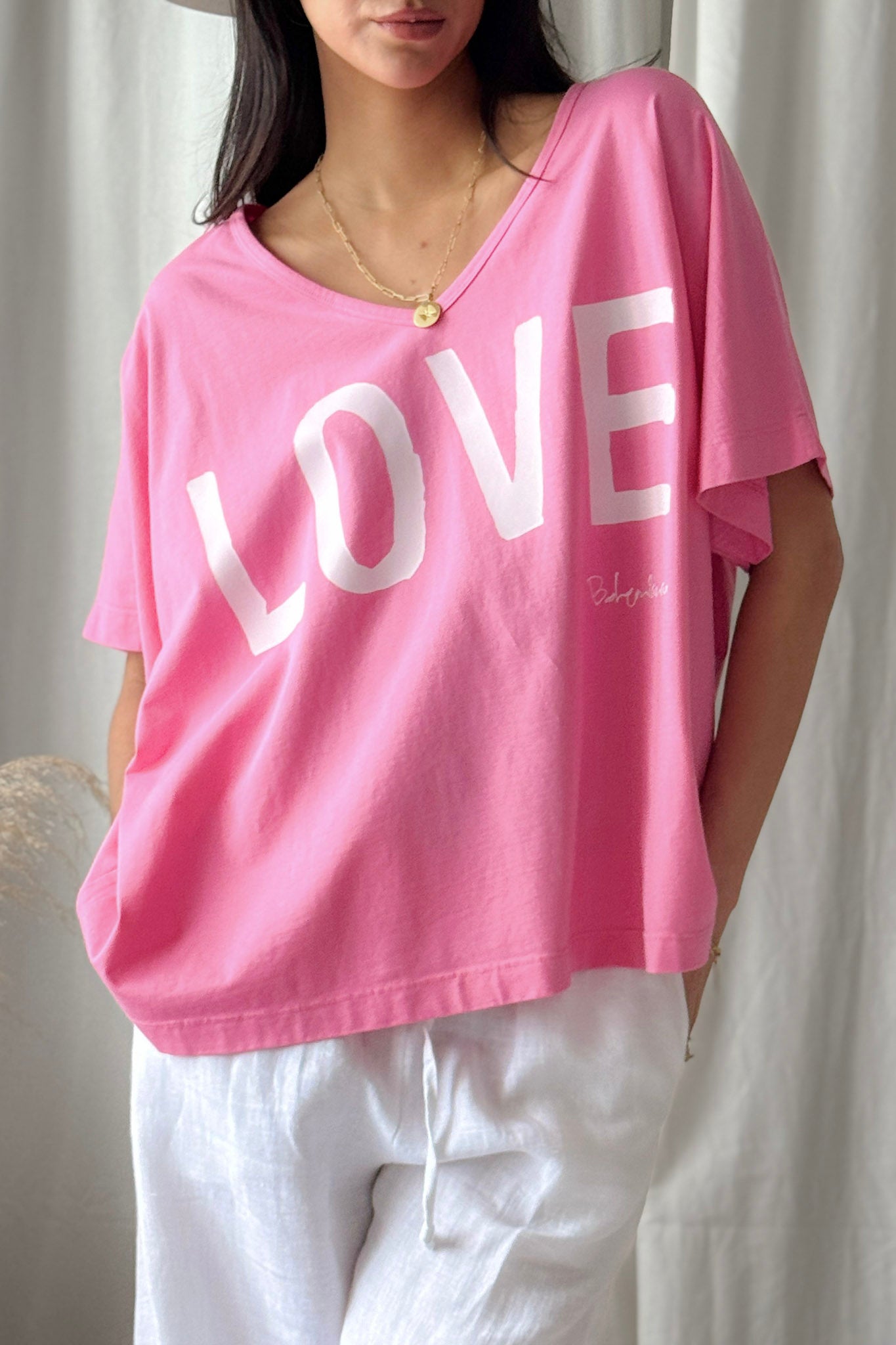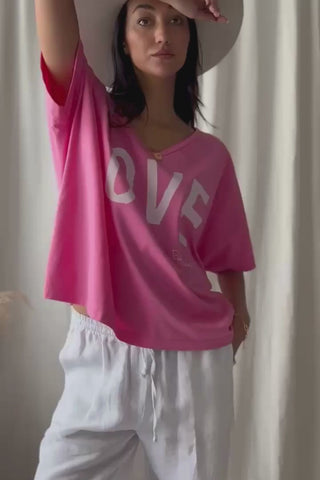 Lovely oversize T-shirt with a LOVE print and a flattering V-neckline.