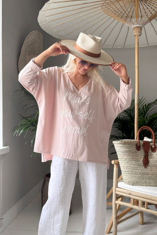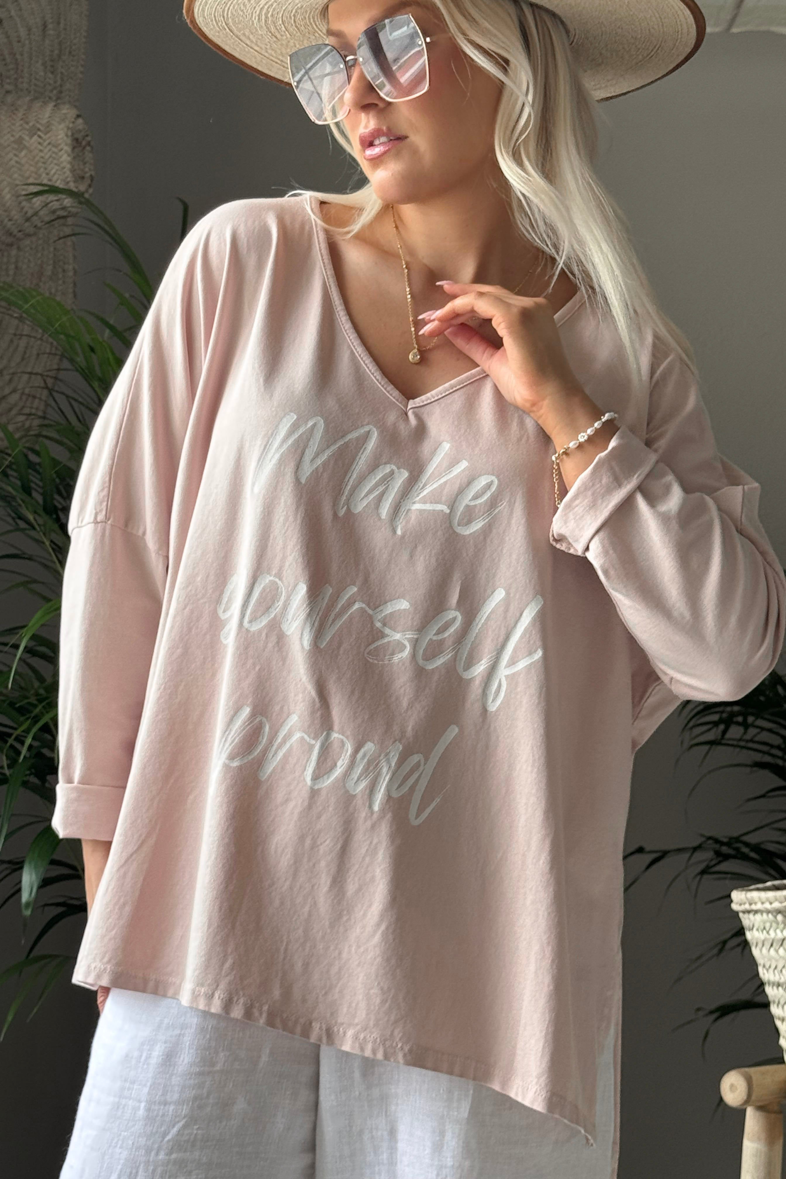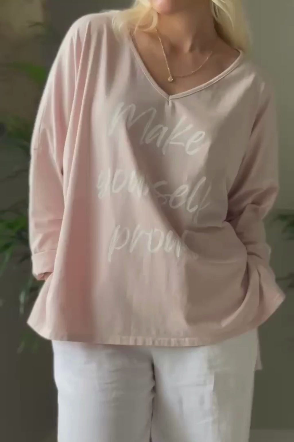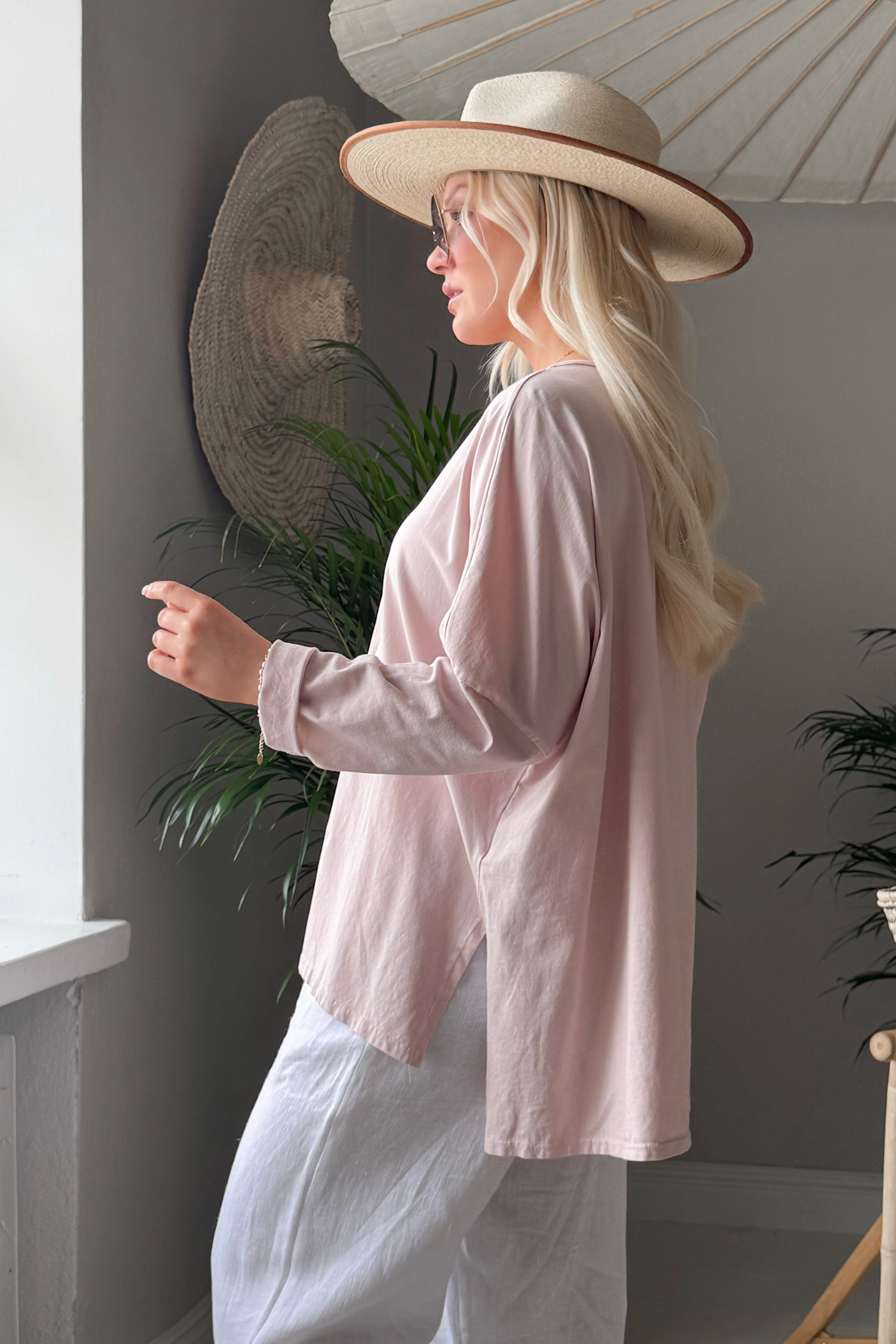 Make yourself proud - that's our philosophy! This oversized long-sleeved t-shirt is made of soft-washed cotton and is a familiar favorite. It features a V-neck, a bottom-covering length and slits at the hem.
