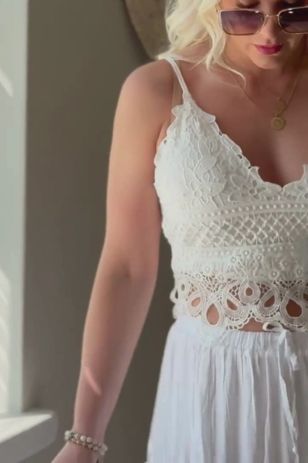Beautiful viscose skirt with a comfortable elastic waistband with ties. Beautiful lace details at the hem gives this dress a feminine bohemian look. The skirt has a petticoat.