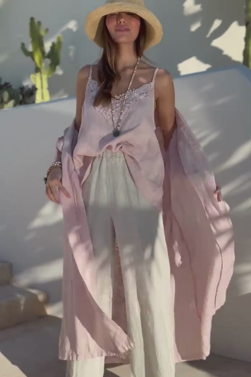 Machine wash at 30 degrees, do not tumble dry. Wash with similar colors. Linen can shrink by 2-4% in the wash, but it will mold to your body in use.