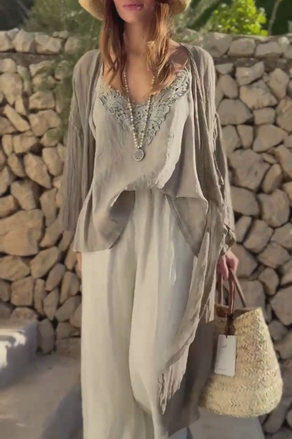 Lightweight and airy top with a V-neckline, featuring a beautiful floral embroidery on the front. The flared A-line silhouette creates a flattering shape and feels comfortable to wear. Adjustable tie shoulder straps complete the fit. The color of the product is slightly darker in real life than in the images.