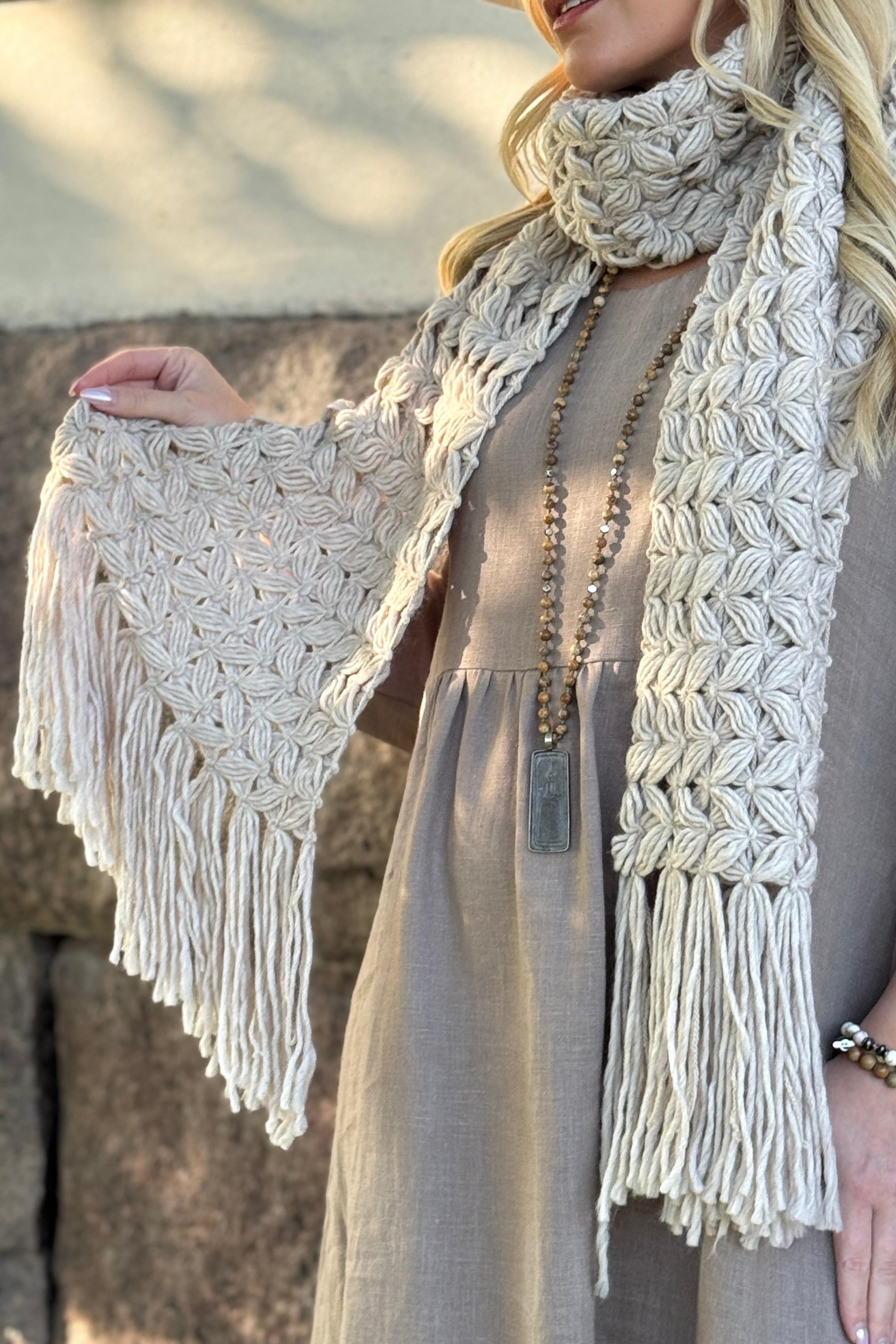 Hapsullinen kaulahuivi, jossa todella kaunis neulos. Kietoutuu hyvin kaulaan ja on pehmeä, ei kutita. Harmoniset sävyt sopivat hattuihimme ja pipoihin.