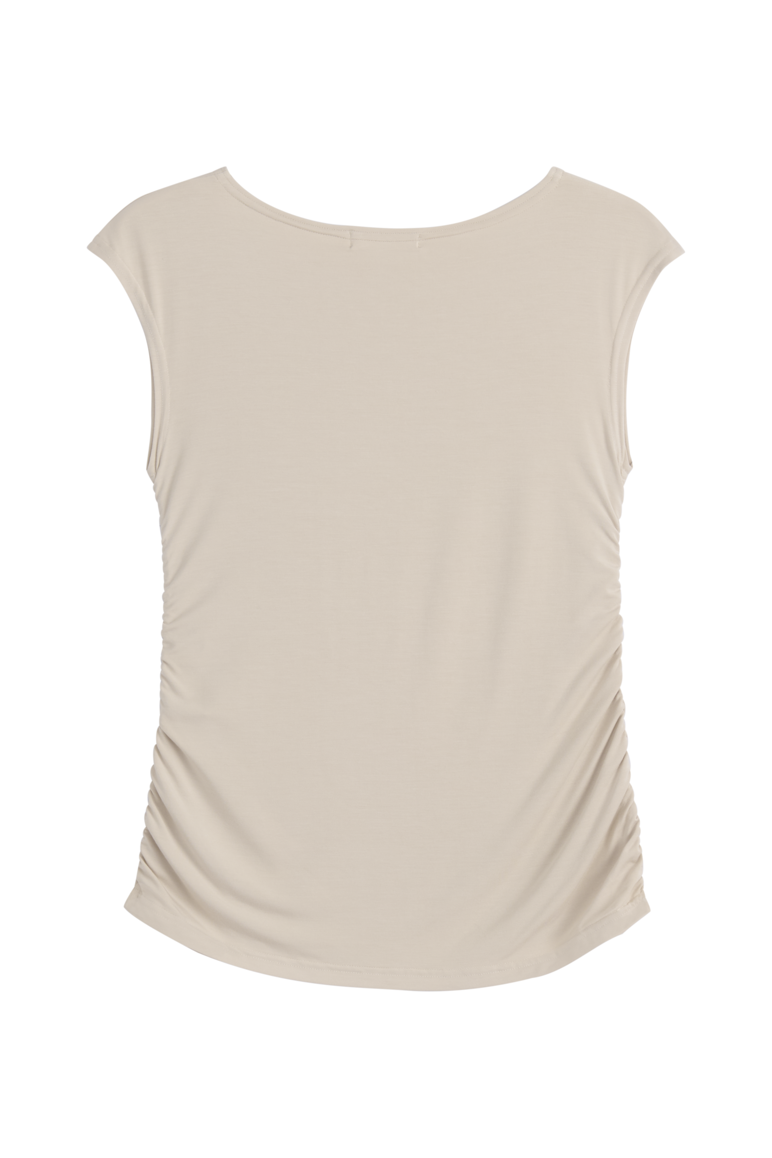 Elegantti, hihaton t-paita ohuempaa, silkinpehmeää bambutrikoota., jossa yhdistyvät mukavuus ja tyylikkyys. Malli istuu sivurypytysten ansiosta kauniisti vartalolle.