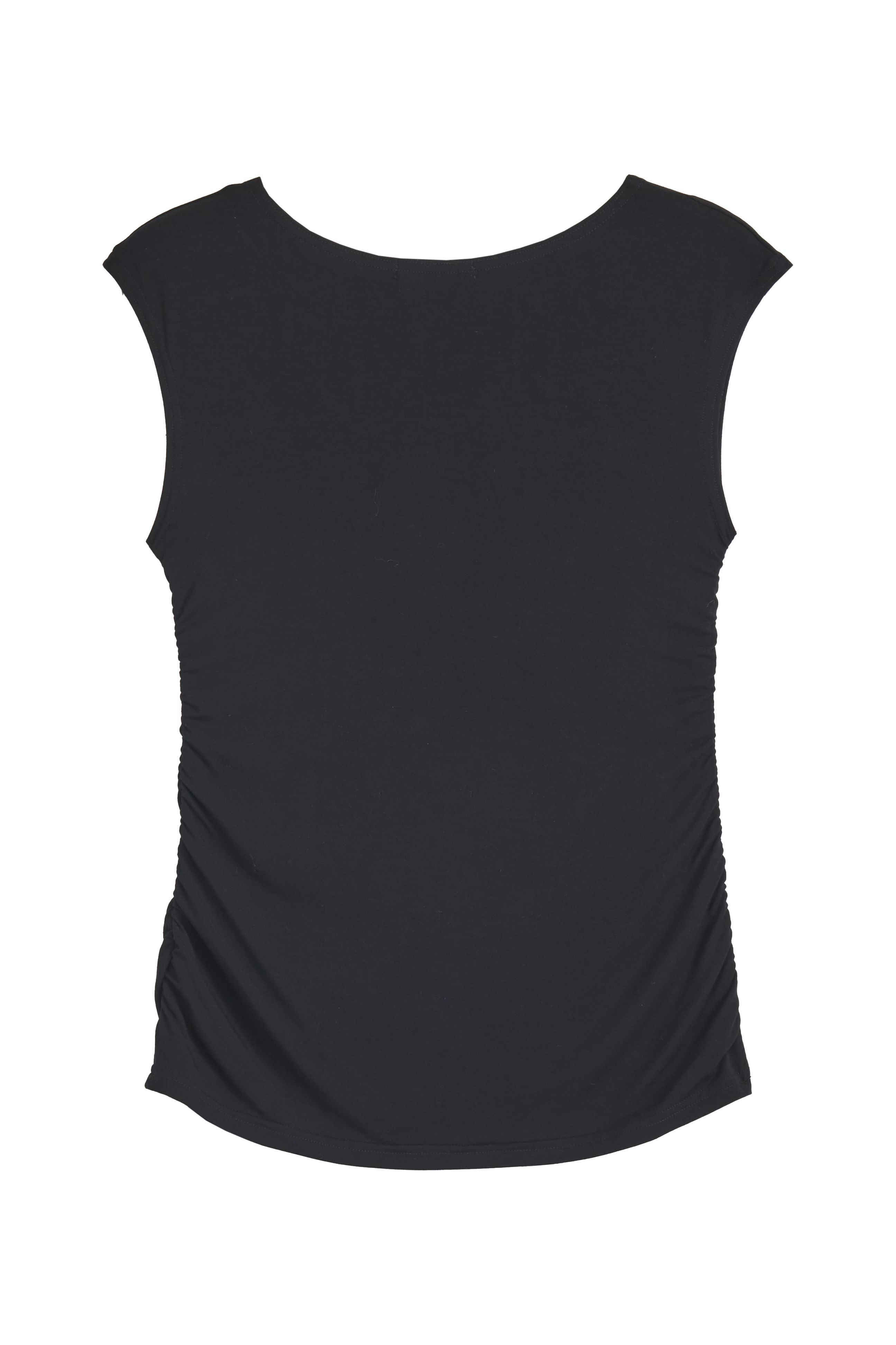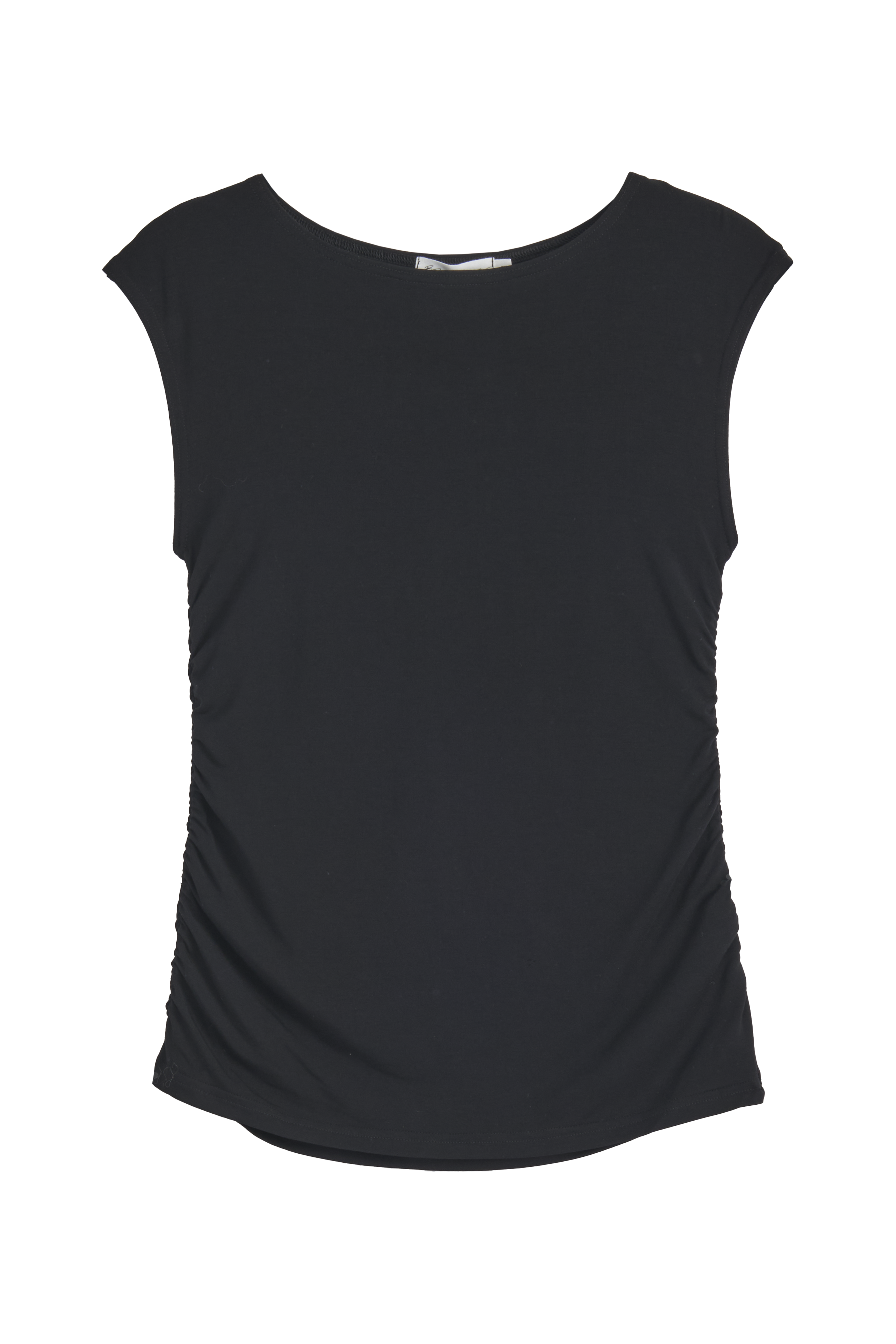 Elegantti, hihaton t-paita ohuempaa, silkinpehmeää bambutrikoota., jossa yhdistyvät mukavuus ja tyylikkyys. Malli istuu sivurypytysten ansiosta kauniisti vartalolle.