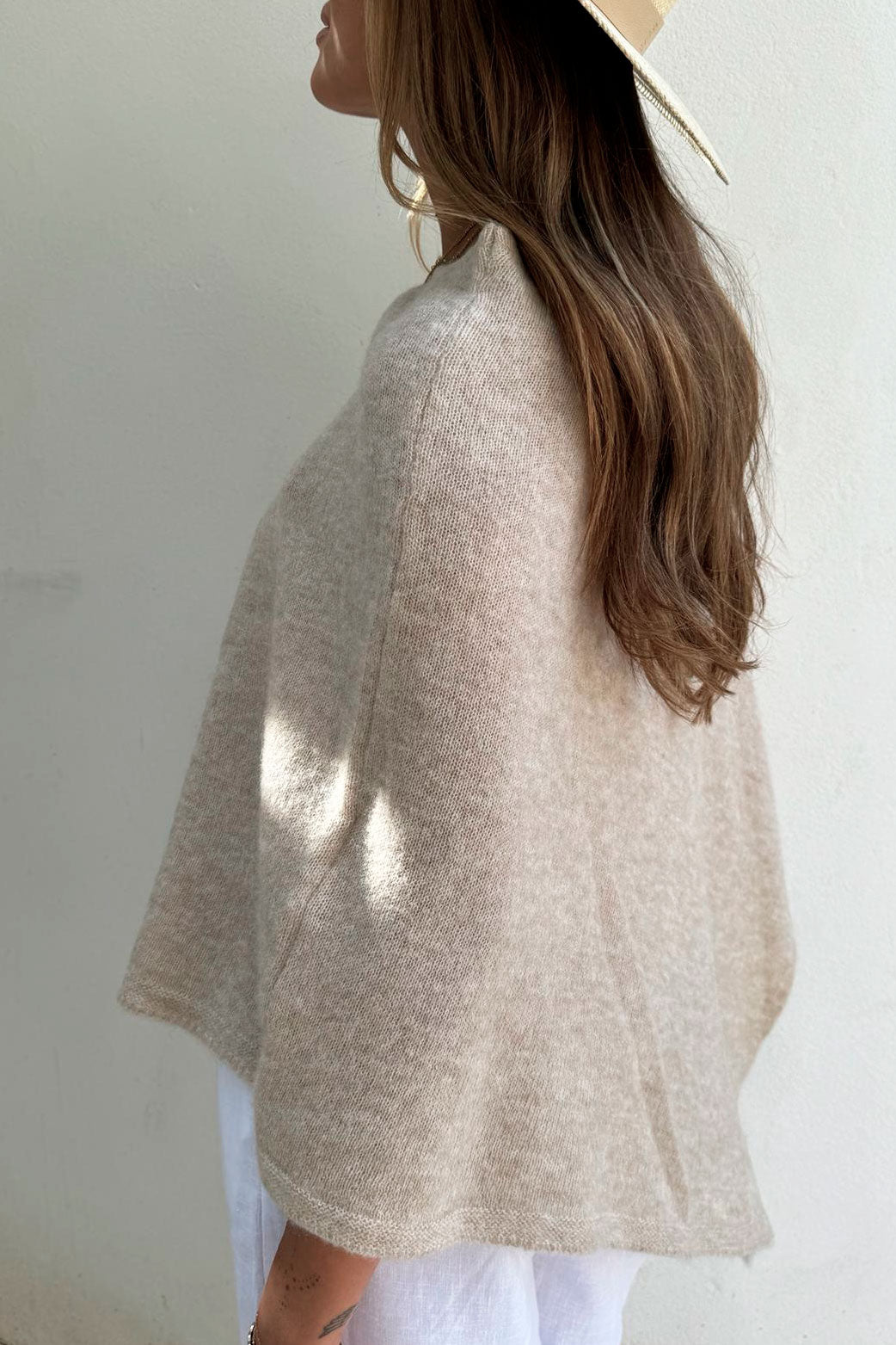 Henkäyksen kevyt ja pehmeä poncho ylellistä alpakkaa. Yhdistä saman sarjan unelmanpehmeään Adams-alpakkahuiviin.