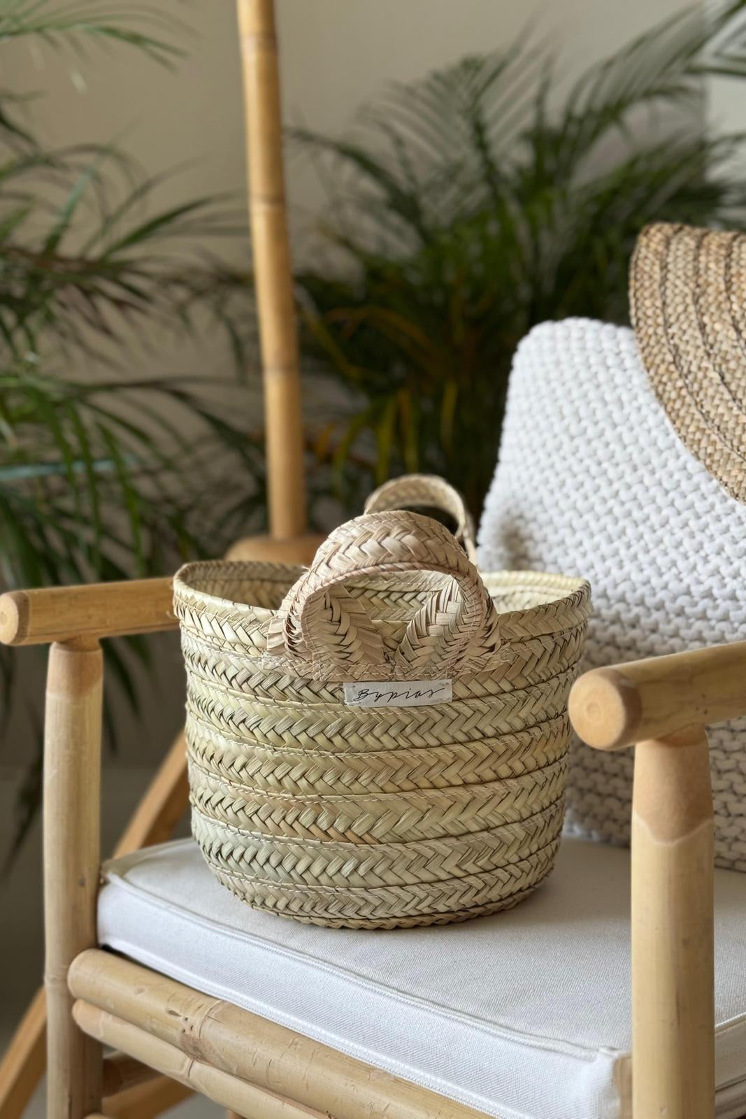 Kaunis käsin punottu punoskori on valmistettu luonnollisesta palmunlehdestä. Pieni kori tekee säilytyksestä tyylikkään ja osan kodin sisutuksesta. Korin kahvat tekevät siitä helposti kannettavan.