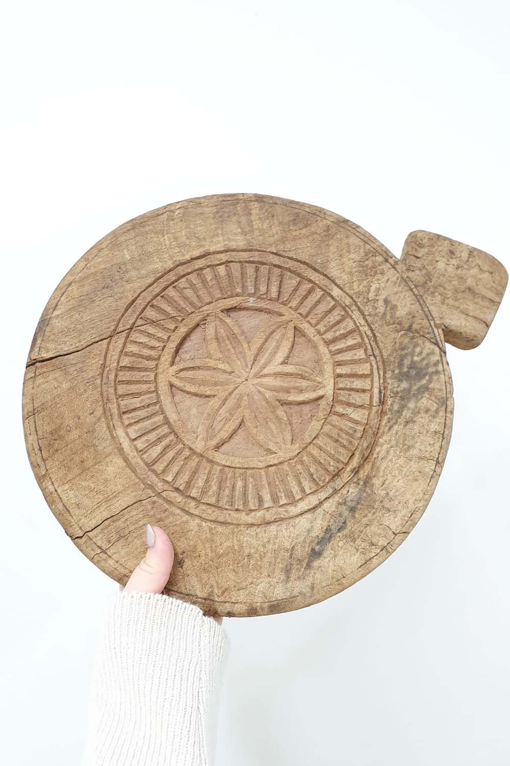 Perinteisen Chapati-leivän valmistuksessa muottina käytetty alusta. Upea, uniikki sisustusesine, joka toimii myös kauniina tarjoilualustana.