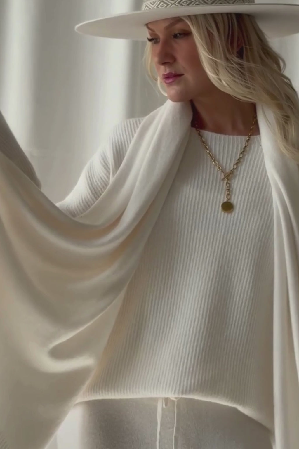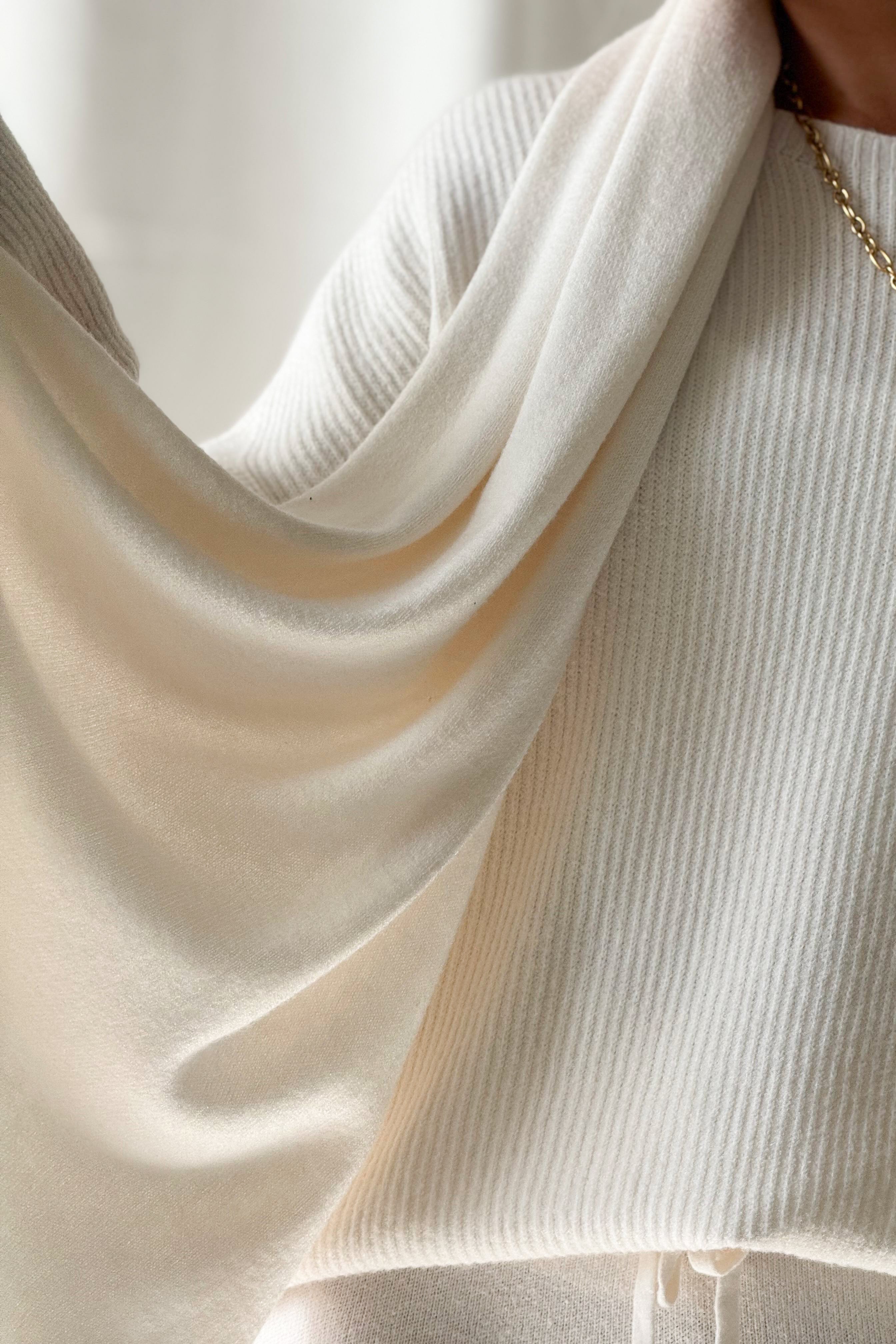 Ylellisen pehmeä ja kookas huivi toimii hartioilla shaalina kuin kaulaan kiedottuna ja on täydellinen lämmittäjä viileinä päivinä. Materiaali on joustavaa ja tuntuu iholla miellyttävältä, eikä kutita.