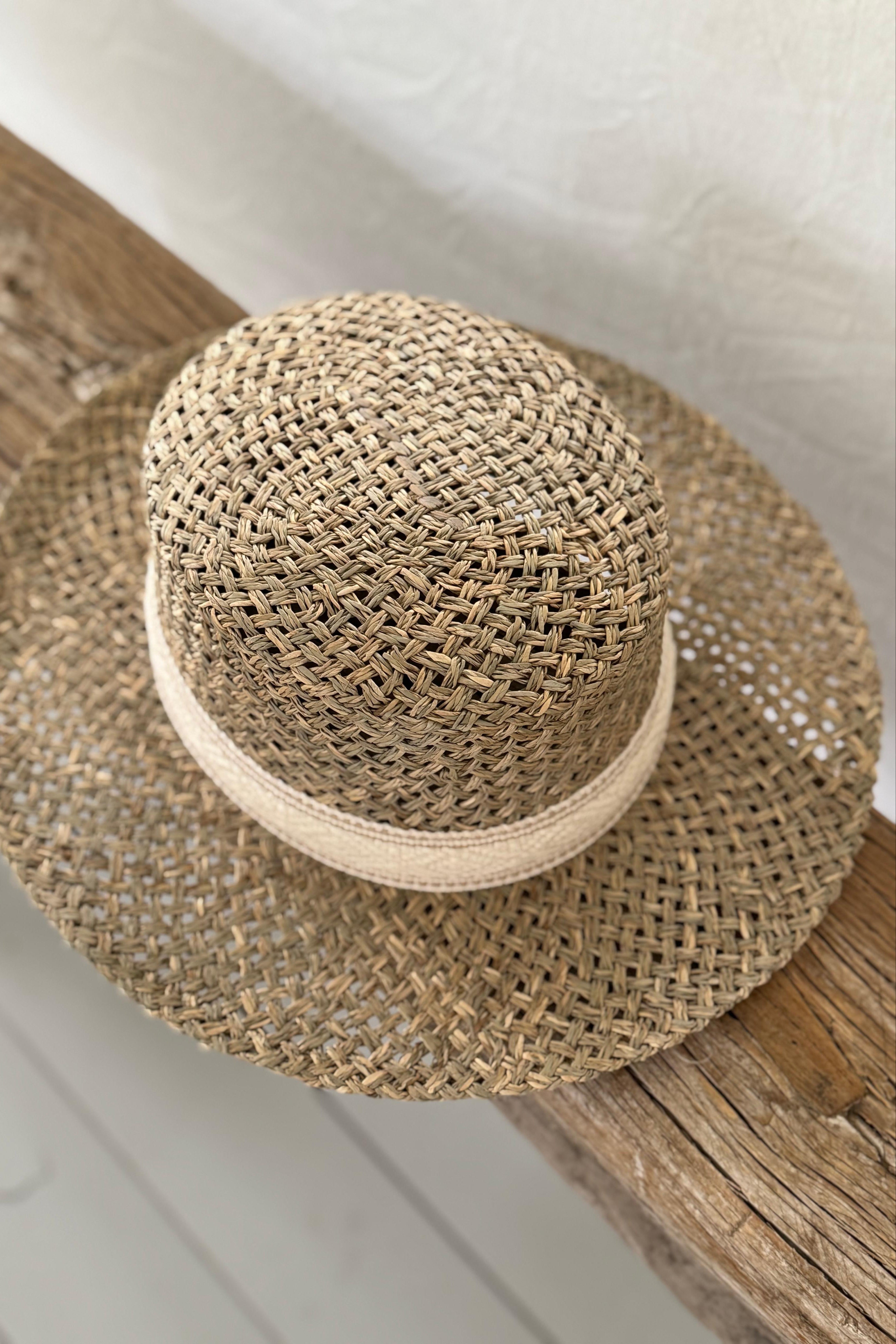 Ihana rento BYPIAS lierihattu on täydellinen rannalle ja rennon tyylin kruunaamiseksi. Hattua koristaa leveä kudottu nauha. Hattu on väljäästi punottu, ja jokainen tuote on yksilöllinen. Hatun sisällä on kankainen hikinauha.