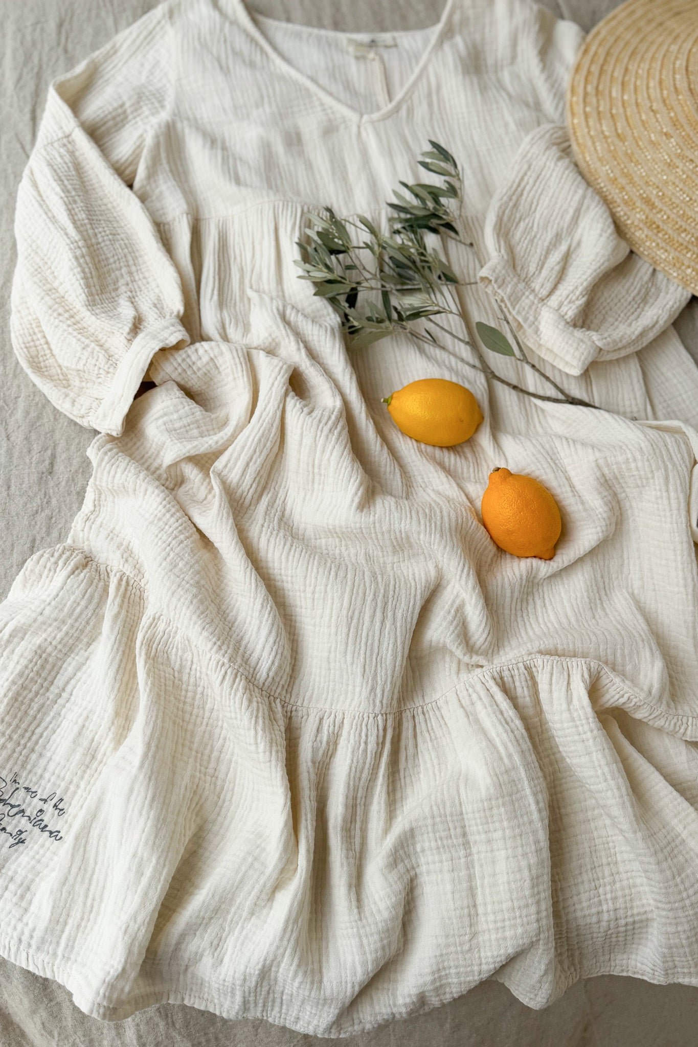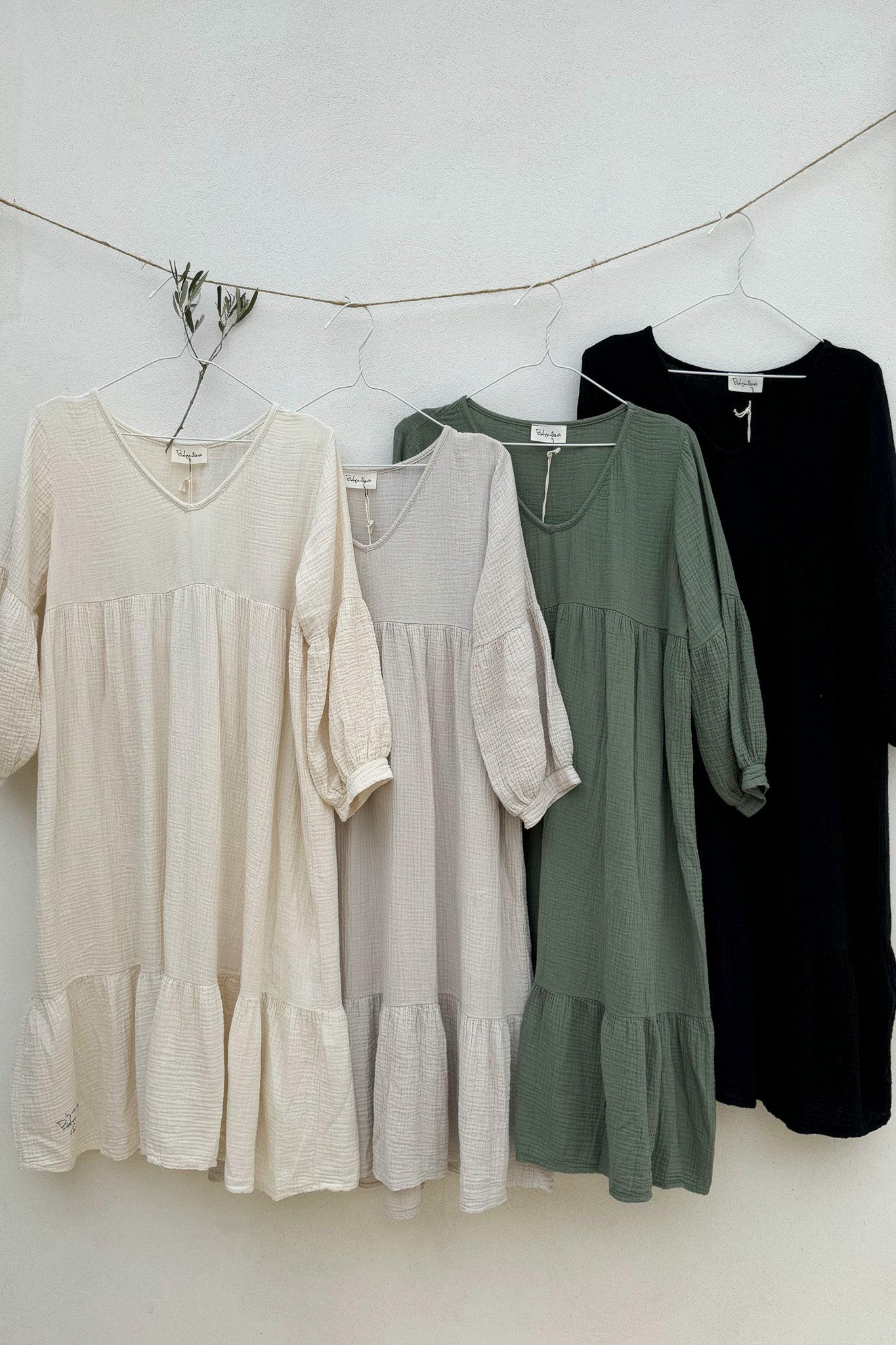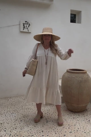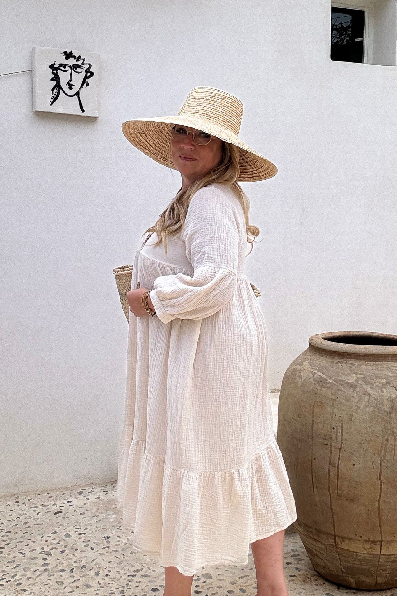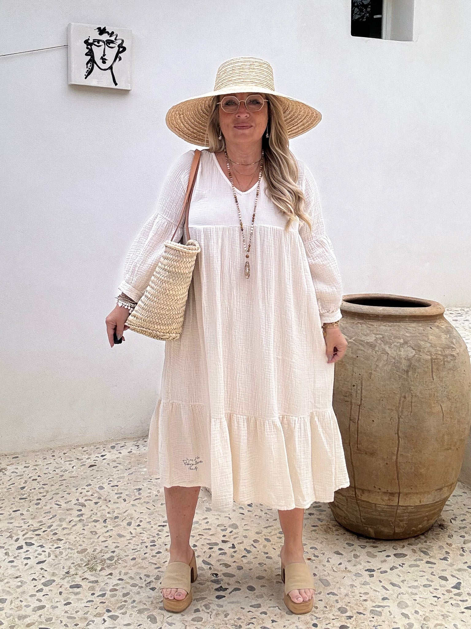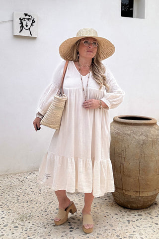 Free Spirit puuvillamekko on vohvelikuosinen, unelmapehmeä kuin pumpuli. Sävy cream on lämmin luonnonvalkoinen, verrattuna samaan mekkoon sävyssä beige, joka on viileämpi väriltään. Helppohoitoinen ja malliltaan ajaton, romanttinen klassikko. Käy XS-XL kokoiselle. Huomioitavana, että rintalaskos osuu rintojen kohdalle, vertaa siitä rinnanympärysmittasi. Rennot pussihihat sekä frilla helmassa antavat tälle mekolle rennon, mutta tyylikkään ilmeen. Stailaa tämä mekko buutseilla ja huivilla viileämpinä päivinä, kesällä tämän kanssa et tarvitse kuin vilpoisat sandaalit.