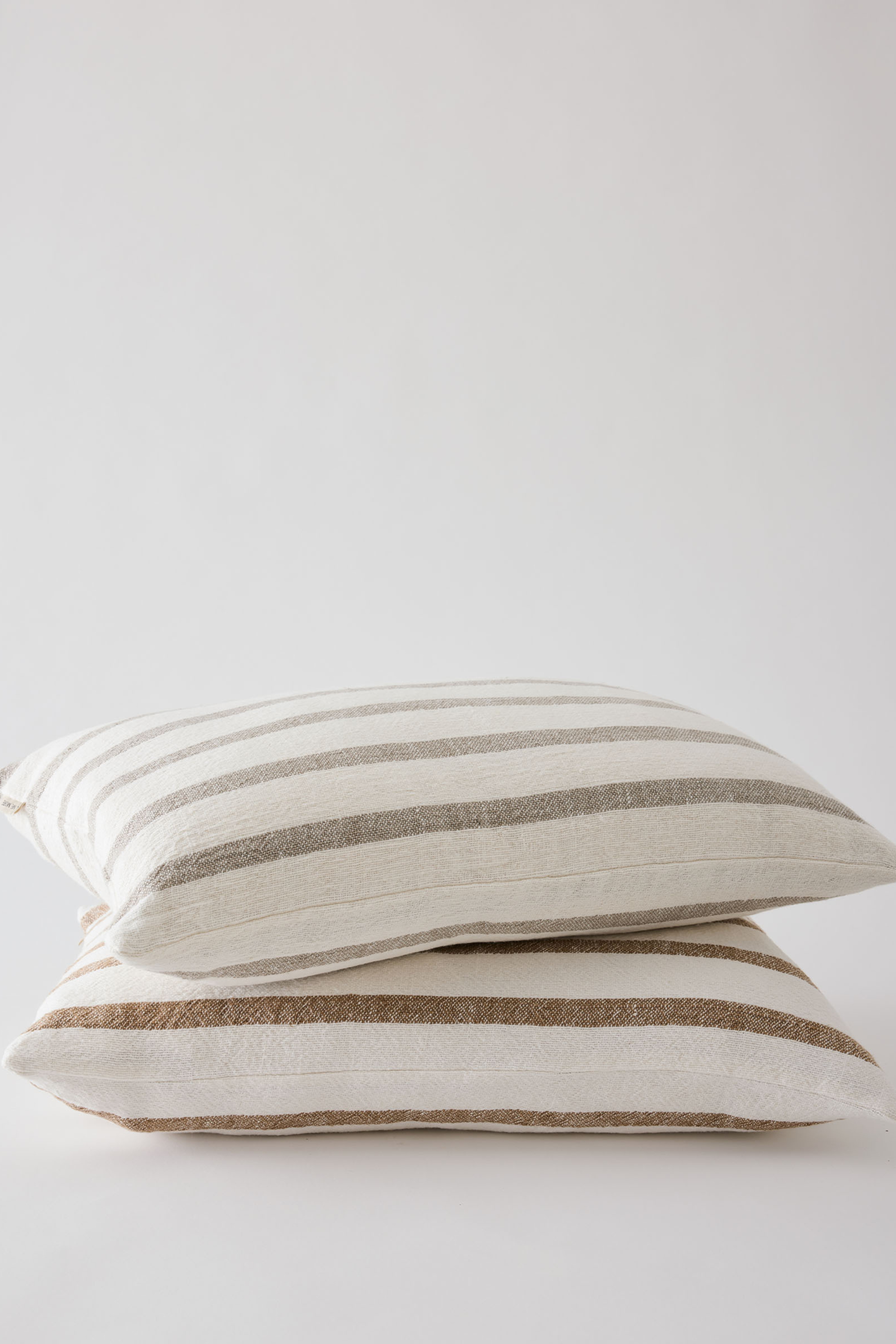 Kaunis raidallinen tyynynpäällinen, valmistettu puuvillan ja paksumman pellavan sekoituksesta.