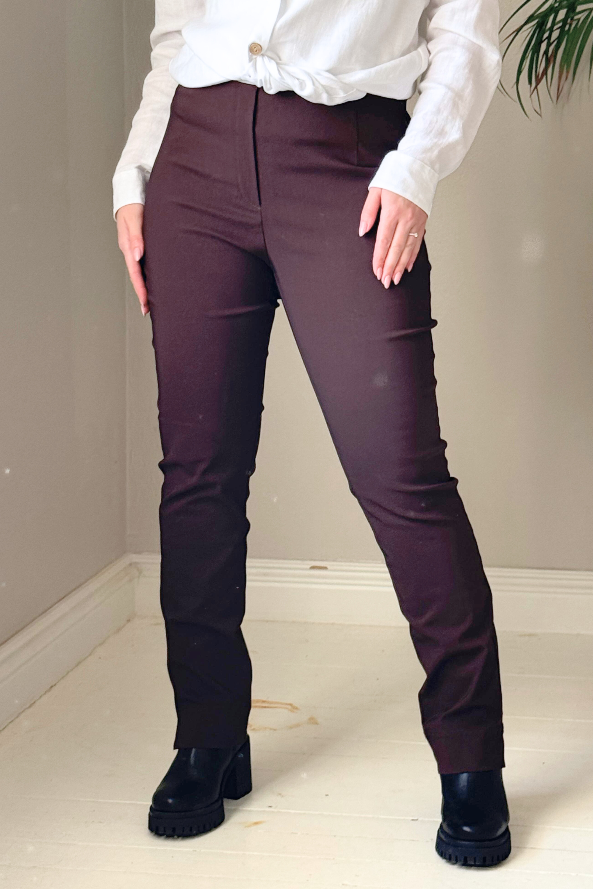 Ina bestseller stretch housumallissa on tilaa masulle, pepulle ja reisille. Siksi tämä huippuhousu sopiikin kaikille vartalotyypeille. Pull on-housussa ei vetoketjuja, nappeja vaan vyötärö nousee mukavasti korkealle. Klassinen housu on hiukan väljä lahkeista, joissa sivuhalkiot. Materiaali jokasäähän sopivaa joustavaa Bengalinea. Valmistettu Eurooppalaisena laatutuotteena. Mitoitus on reiluhkoa, valitse kokotaulukosta omasi. Housu pysyy napakkana, eivät venähdä.