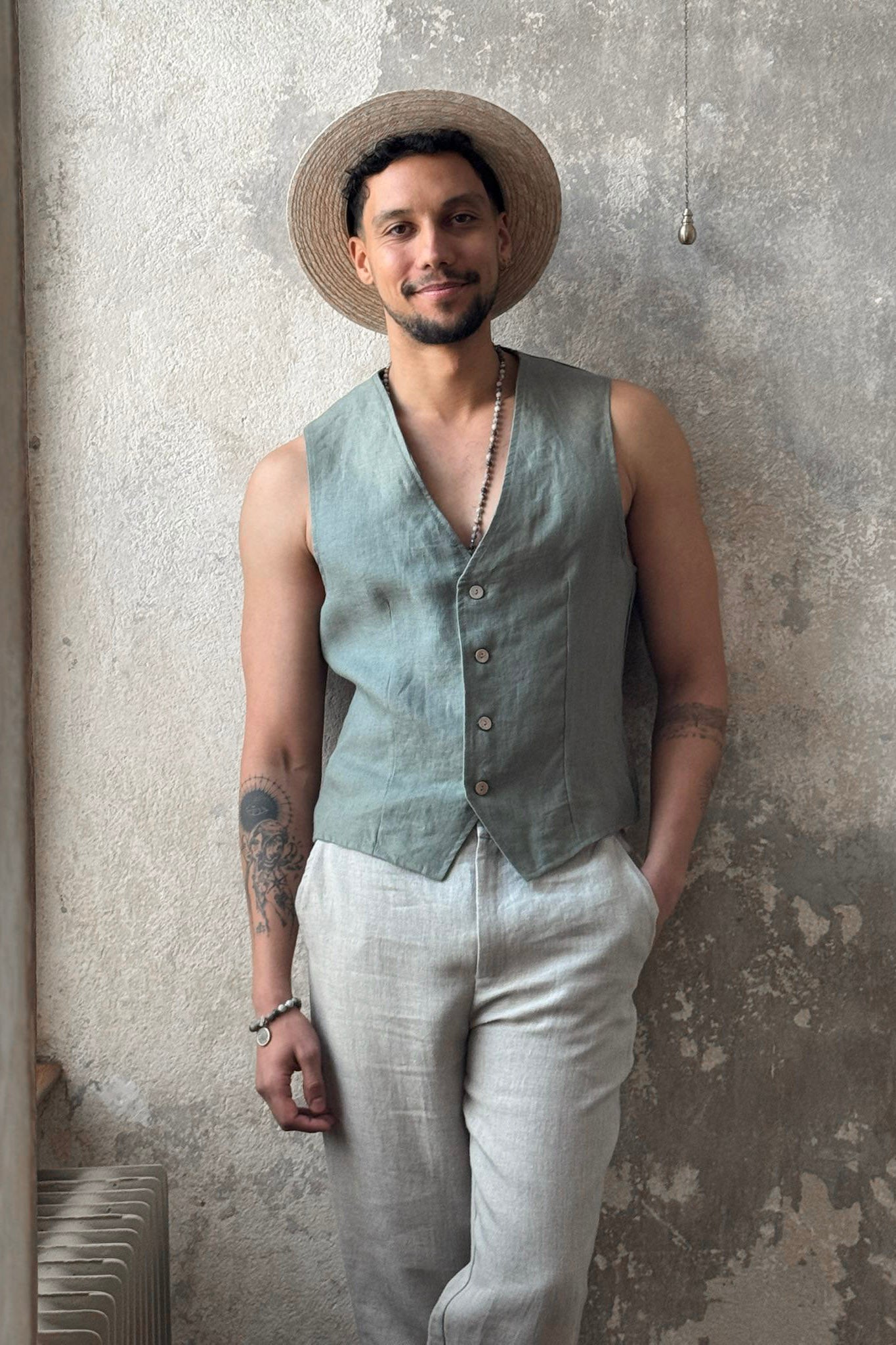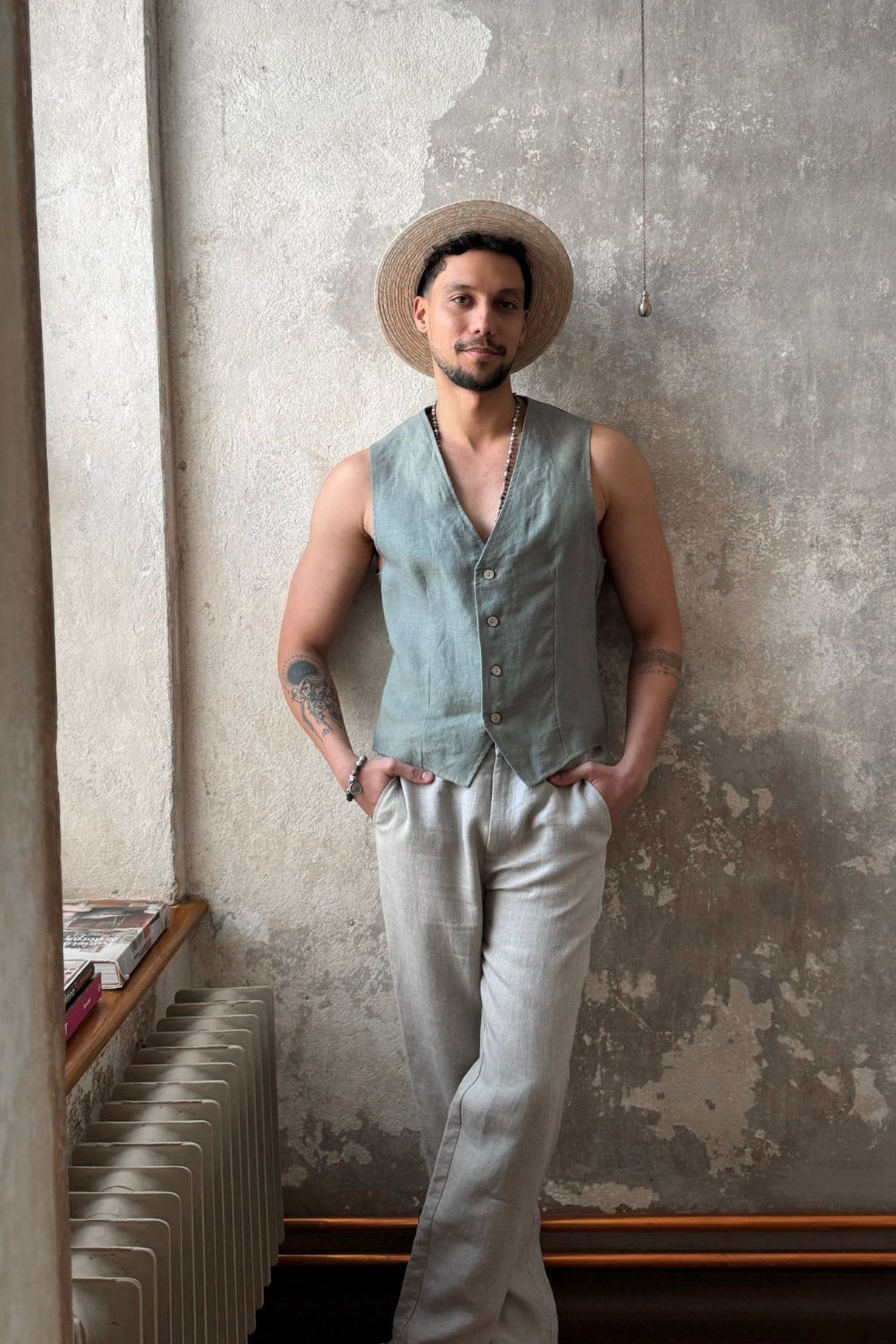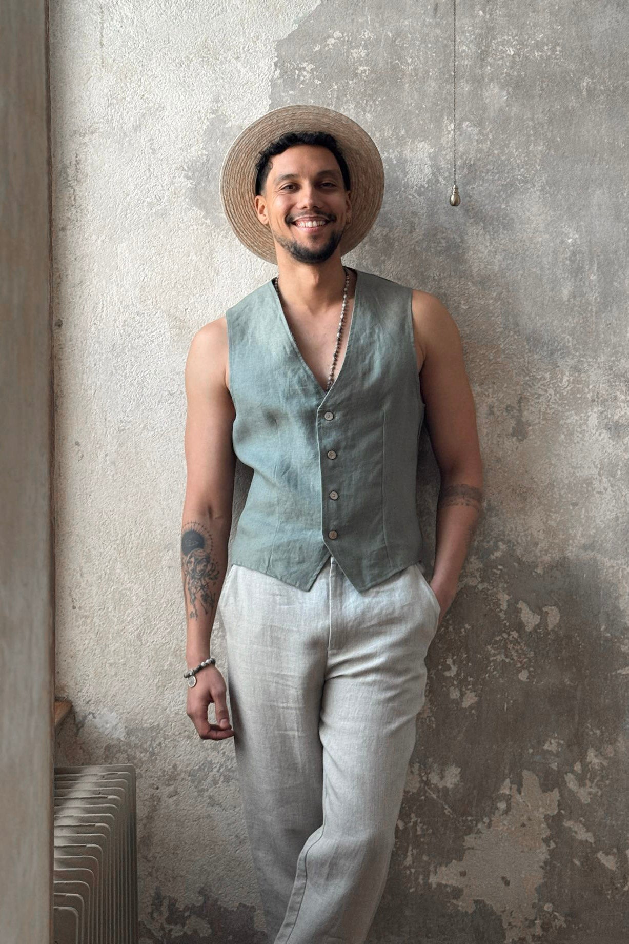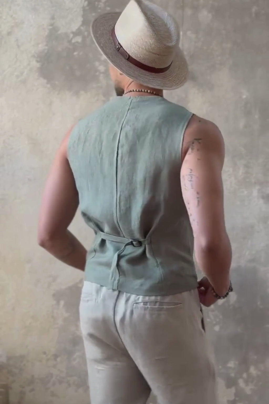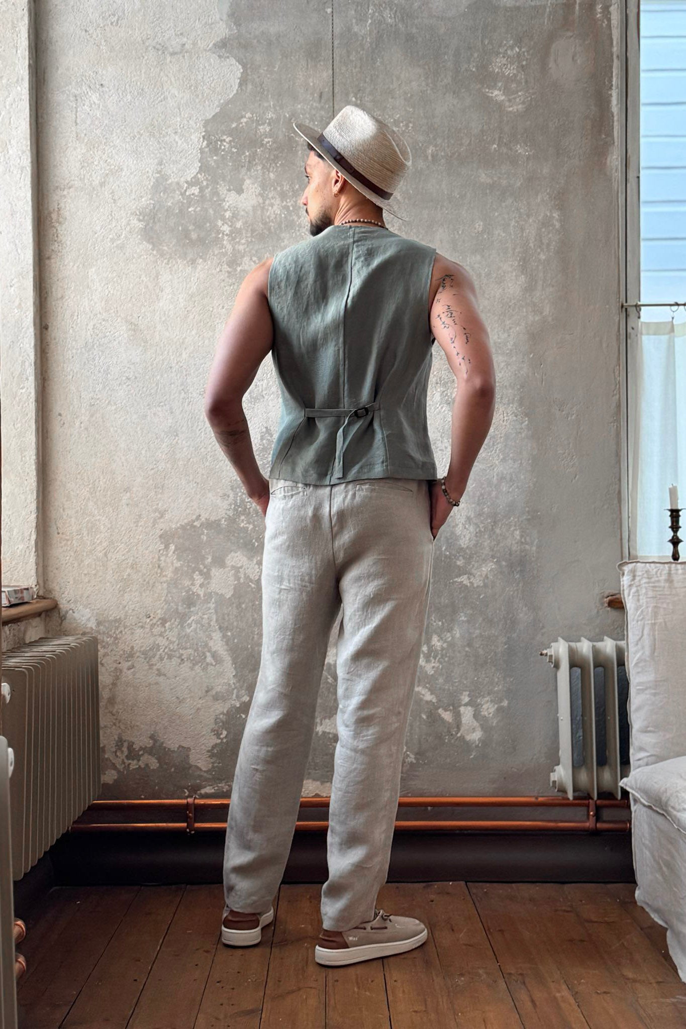 Ajaton ja upea unisex pellavaliivi, miehille sekä naisille! Selässä säätövara, trendikkäästi sisäänotettu.