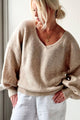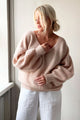 Ylellisen tuntuinen ja kutisematon neule, jossa runsaasti alpakanvillaa. Venyvä ja joustava, pussimaiset hihat ja riittävästi mittaa hihoissa, pituudessa pidemmillekin.